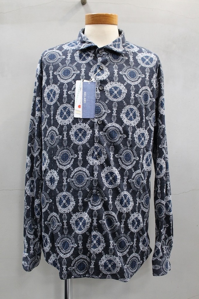 RIELABO リエラボ オリエンタルプリントシャツ ネイビー系