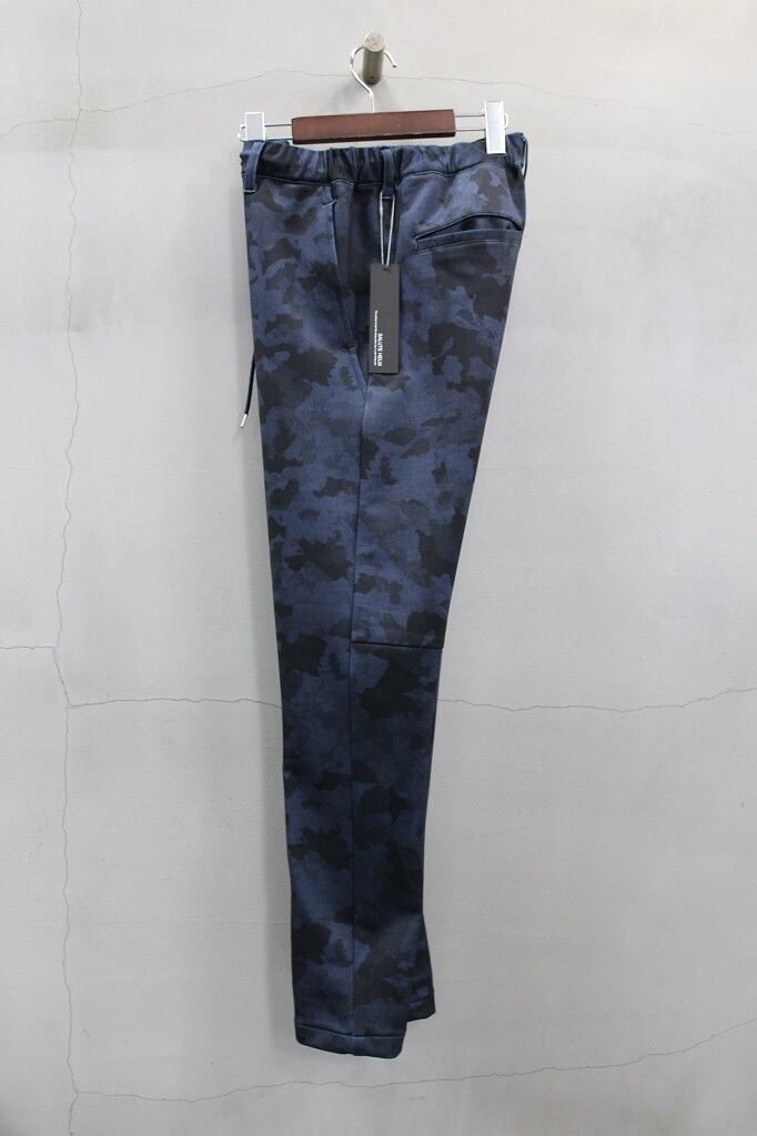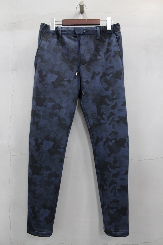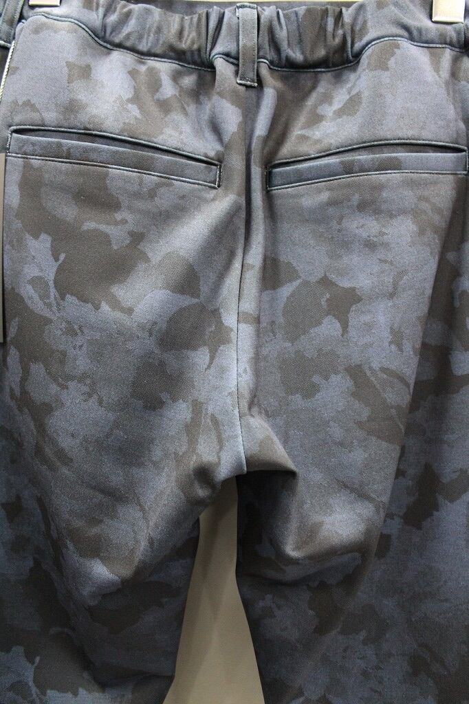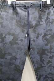 新しい染色技術で加工されたカモフラージュ昇華転写プリントを施したハイテンションストレッチ素材を使用したスキニーシルエットのジョガーパンツです。ジョガーパンツ特有のストレスの無い履き感とタイトなシルエットが特徴