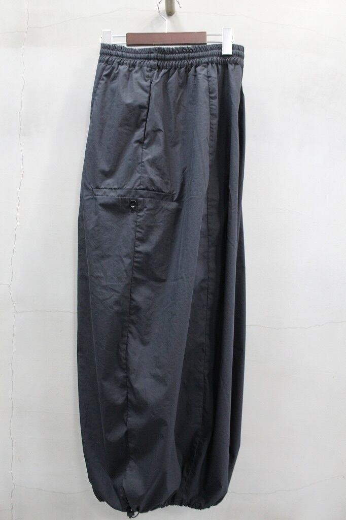 ドライなタッチがミリタリー感のあるキュプラ混のタイプライターを使用した極太ボリュームパンツ。裾口にゴムコードが通してあり、裾の分量を変えられます。製品洗いを施すことにより、ユーズド感とソフトな着心地に仕上がっています