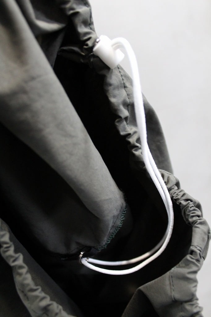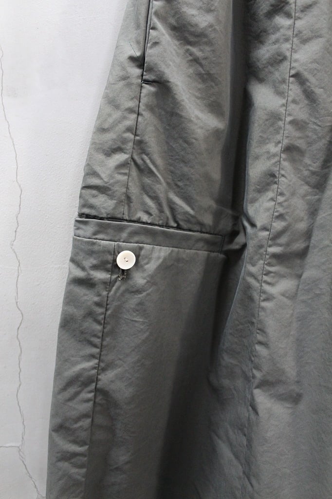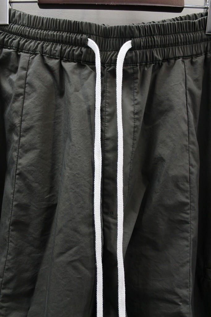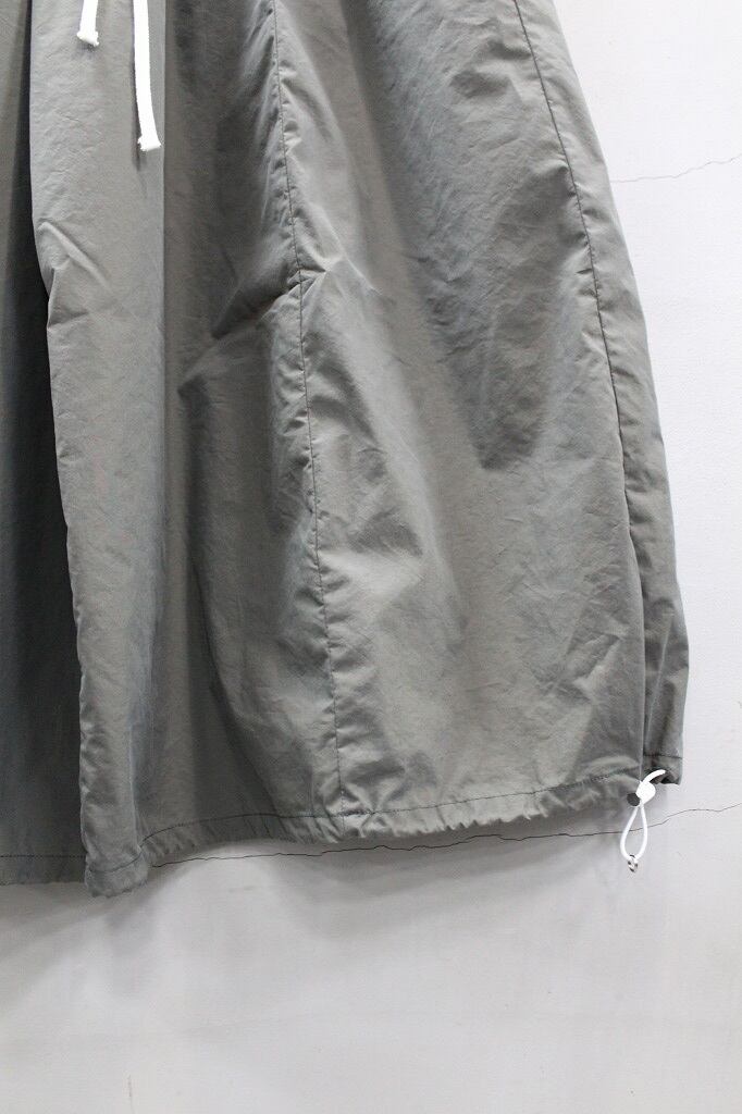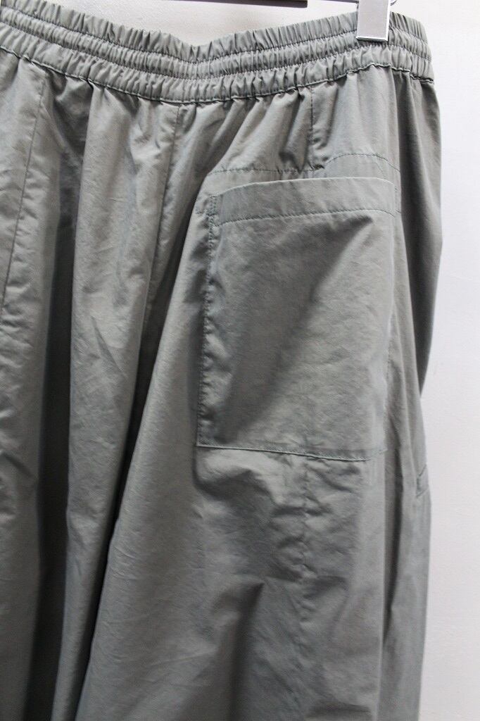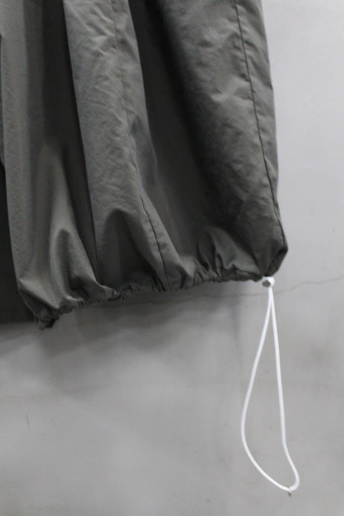 ドライなタッチがミリタリー感のあるキュプラ混のタイプライターを使用した極太ボリュームパンツ。裾口にゴムコードが通してあり、裾の分量を変えられます。製品洗いを施すことにより、ユーズド感とソフトな着心地に仕上がっています