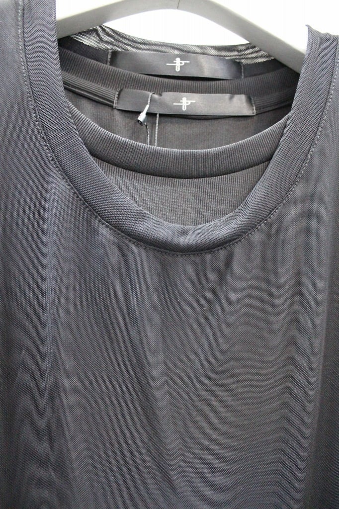 シアー感のあるアウターとリブテレコ素材のインナー。完全に分離する2枚のノースリーブのセットアイテムとなります。2枚を重ね着し、レイヤードするだけで奥行きと動きのあるコーディネートが可能。完全に分離するため、お手持ちのアイテムと個別に組み合わせていただくことも出来ます