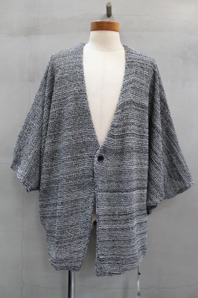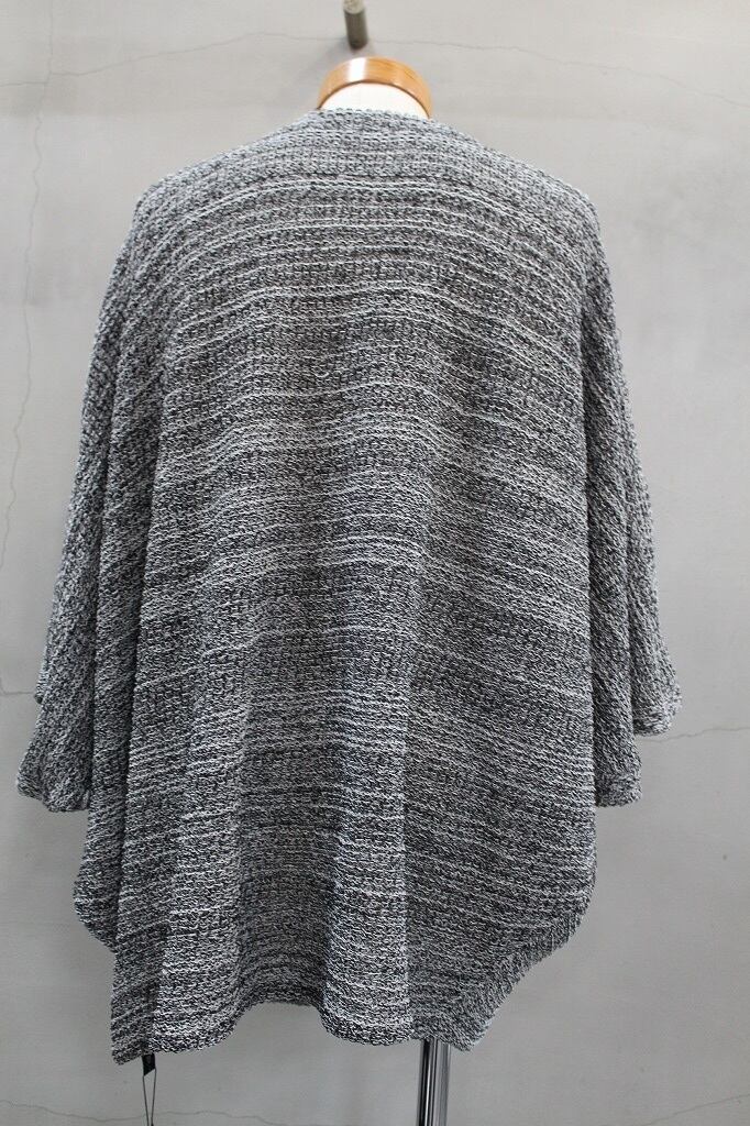 ボクシーなシルエットと立体的で奥行きのある表情が特徴の、夏から秋への移行時など「中途半端」な季節にも活躍しそうなニットカーディガン。編み地にはタック編みの裏目を採用。リラックス感のあるBIGシルエットに幅広な袖口と長めに設定したハーフスリーブ丈、表情豊かな身頃のドレープが魅力的なドルマンスリーブが雰囲気のあるタイプです