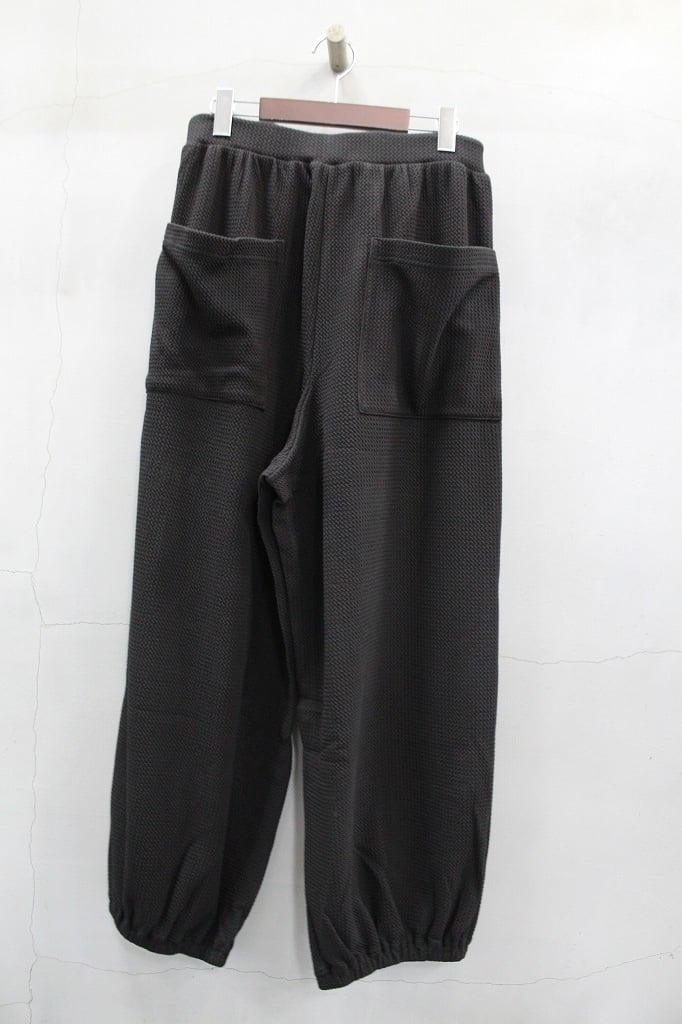 ふっくらとした立体感があり、立体的な編みが特徴の中肉ジャージー素材を使用したシリーズのリラックスパンツ。大きなパッチポケットを施し、実用性とデザイン性を両立しています。左ポケットにはこのシリーズ共通になる「モーツァルト」の箔プリント入り。同素材の長袖TEEとのセットアップもオススメです