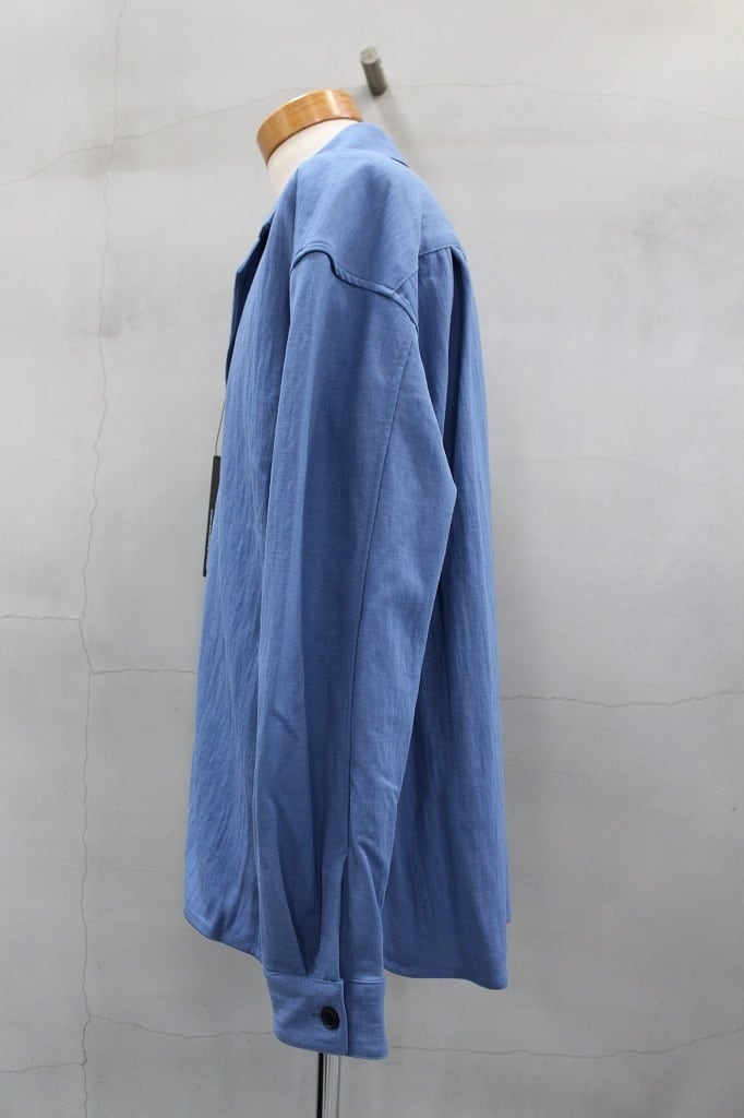 洗いざらしたようなヴィンテージ感のある表情とソフトでとろみ感のあるタッチがレーヨン混素材らしい風合いを持ったオープンカラーのシャツジャケットです。2WAYストレッチで着心地にもしっかりと配慮されています。肌離れも良さそうで、残暑が残る季節からの長袖羽織りに非常にオススメのシャツジャケットです