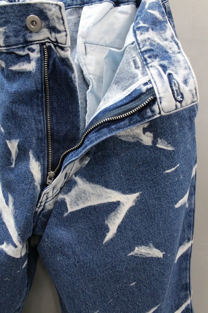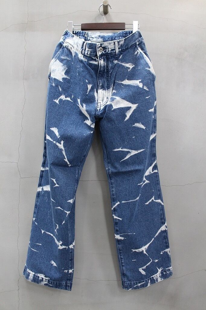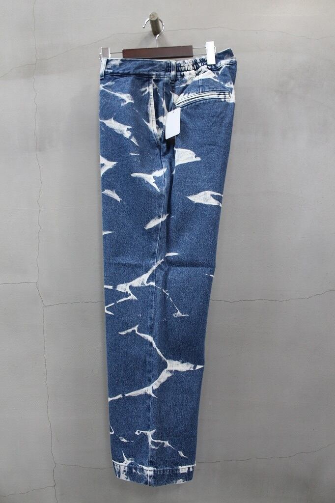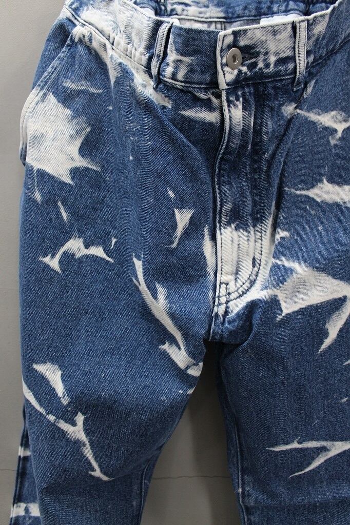 12オンスデニムを使用し、手作業でムラブリーチ加工を施したワイドシルエットのデニムパンツです。余裕あるシルエットにウエストはゴムシャーリングによりリラックスした履き心地をあたえてくれます。