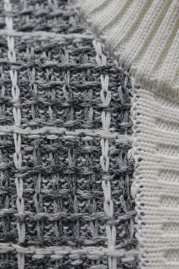 身頃には絣染めの中空糸で編みたてたツイードチェック柄編地を使用。袖は天竺編み、前立てと細腹はリブ編みにすることでメリハリを付けたドライバーズニットです。このようなタイプにはポケットが無いものもありますがこちらは脇前の切替部分にはスラッシュポケットを設けています。秋の立ち上がりにはアウターとして、冬にはインナーになる万能タイプです