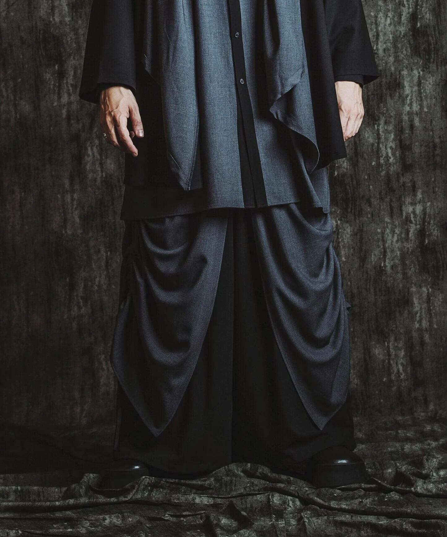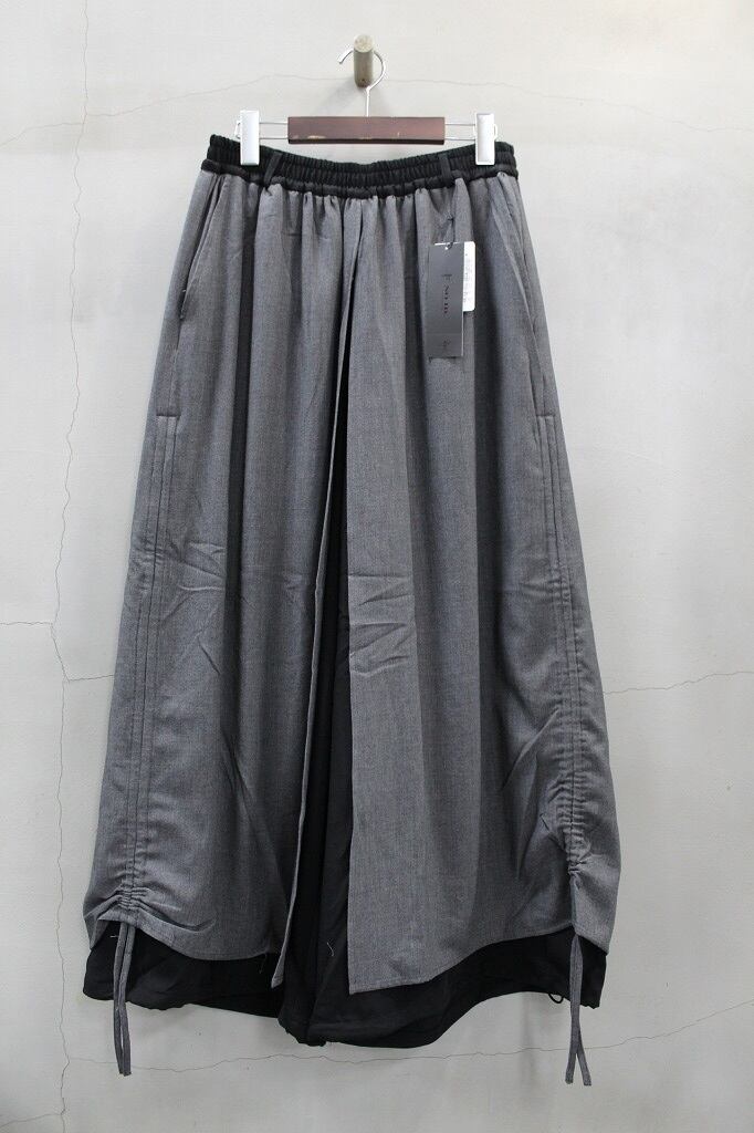 NOID ノーアイディ― ドローストリングスレイヤードバギートラウザーズ チャコール✕ブラック