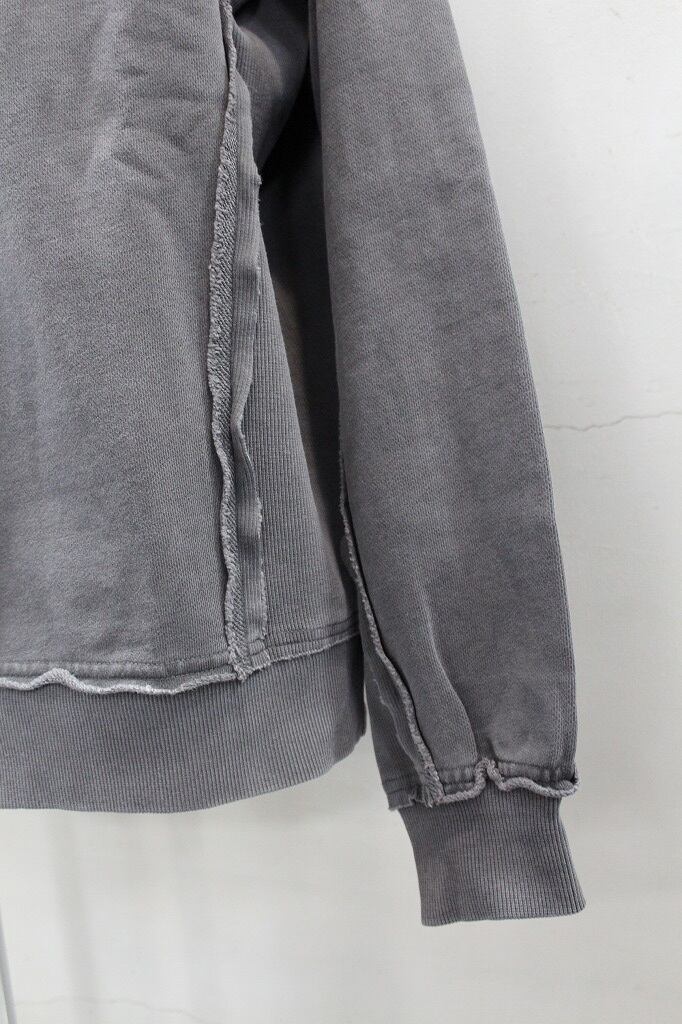 裏毛素材を使用し製品染め後にヴィンテージ仕上げで経年感を表現したクルーネックトレーナーです。アタリの陰影が深いHALBらしい仕上がりの1枚です