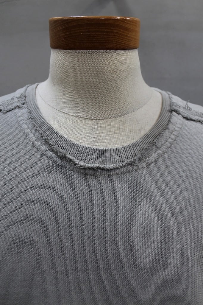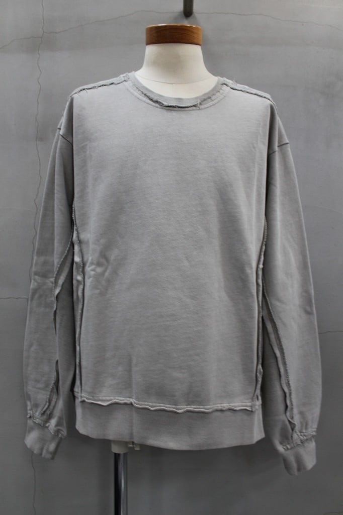 裏毛素材を使用し製品染め後にヴィンテージ仕上げで経年感を表現したクルーネックトレーナーです。アタリの陰影が深いHALBらしい仕上がりの1枚です