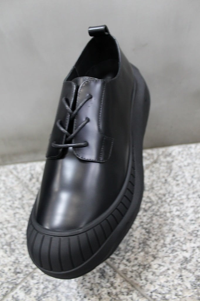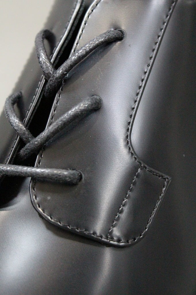 マット仕上げの滑らかなボックスレザーで手作りされており、かかとにエンボス加工された
