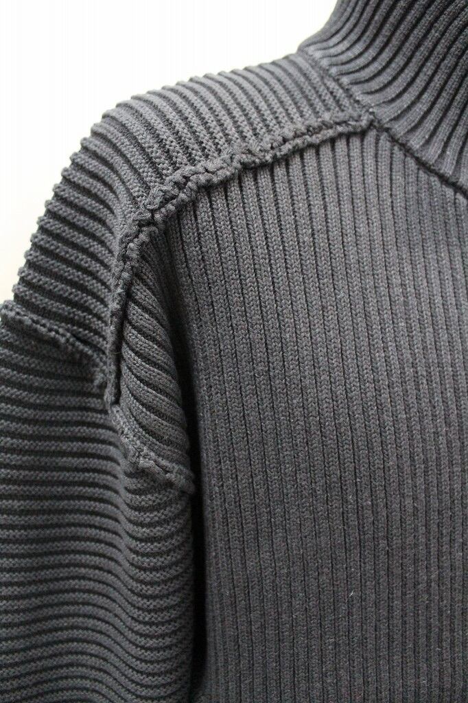 ドライバーズニットをベースに、ライディングギアのディテールをバランス良く取り入れたフロントZIPニットカーディガンです。身頃の編み地には凹凸のはっきりしたリブ編みを採用。