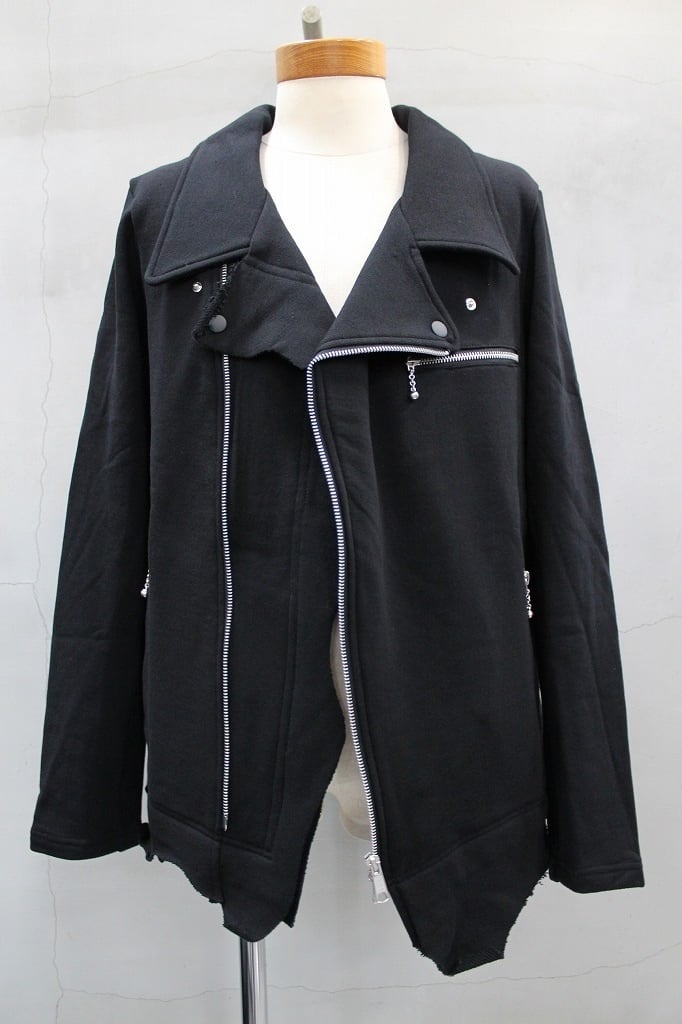 上質なコーマ糸を使用し裏がパイルになったgommeではお馴染みの裏毛ニットを使用。胸元と両サイドにはメタルジップ付きポケットを配置し、アクセントと実用性を両立。裾は断ち切り仕様で、ラフさとエッジの効いたモードな雰囲気をプラスしたWライダースタイプです。見た目にはハードな雰囲気ですが「トレーナー」の着心地で楽しんでもらえる一枚です
