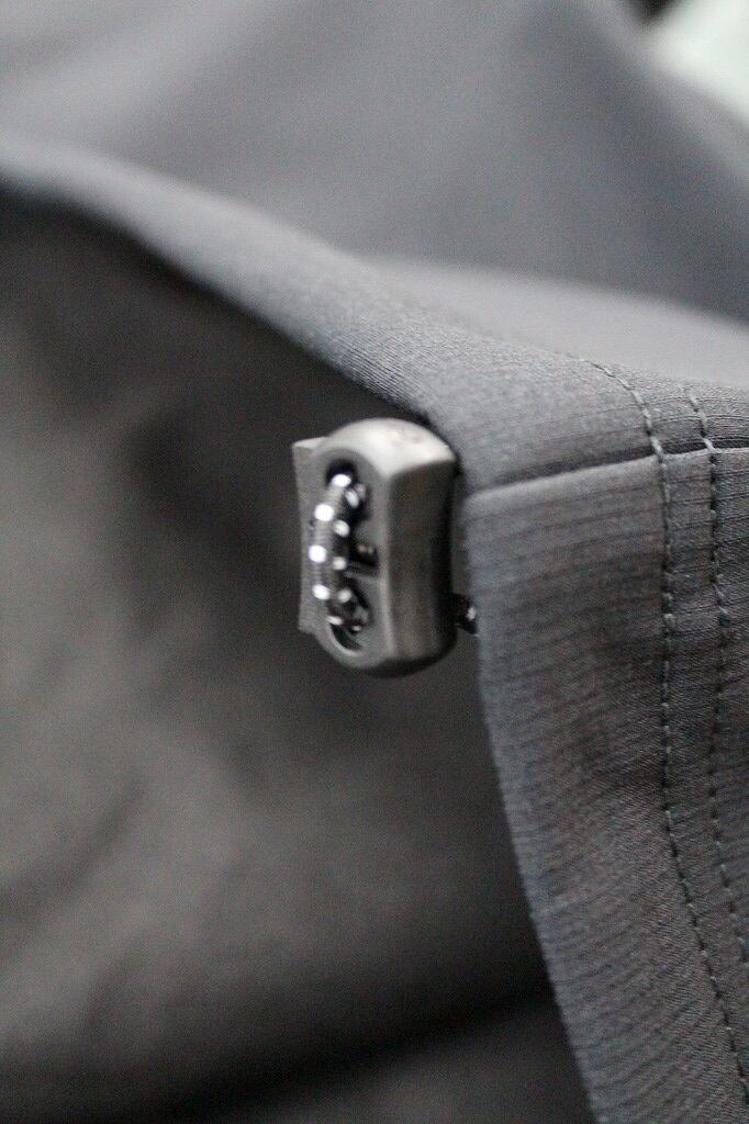 表地にはタフに使える高強度のリップストップストレッチナイロンを使用。裏起毛で保温性を高めた秋冬アクティブウェアという位置付け。裾にドローコードを通し、好みのシルエットに変化させることが可能です