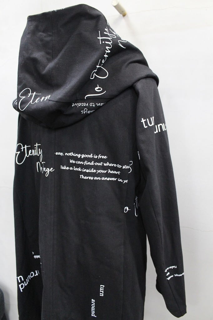 bajra バジュラ ストレッチデニム プリント フーデッドコート ブラック✕プリントホワイト