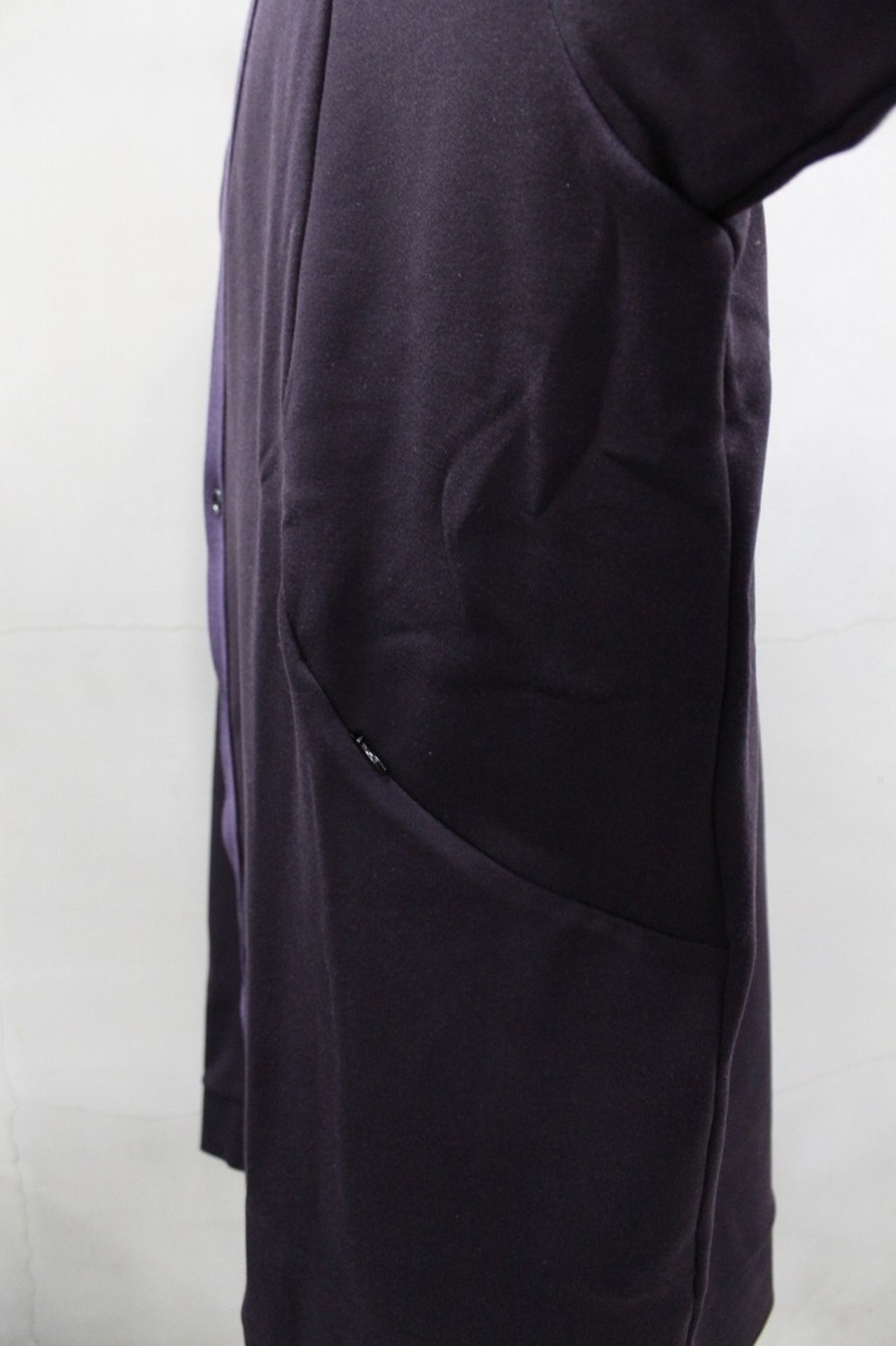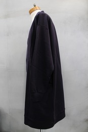 身体を丸く包み込むようなシルエットのロングカーディガンです。生地の落ち感とシルエットの妙でオーバーサイズもすっきり見え、モード感もあるロングカーディガンです