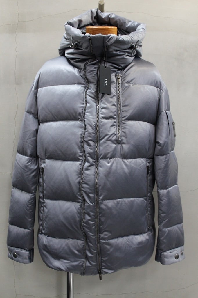 5351POURLESHOMMES レザーエンボスダウンジャケット ブルーグレー