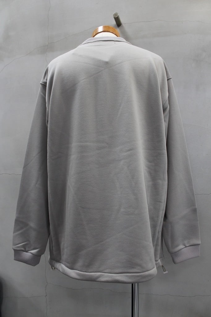 表面はポリエステルフィラメント糸使用で従来の裏毛よりもスポーティさを演出し、裏面はコットン100%で裏毛独特の肌触りの良さと膨らみをだした新素材キャノンループを使用したクルーネック。裾にはスピンドルを通しており、シルエットの遊びを取り入れたデザイン。サイドシームポケット付きが何気にうれしい。37,5度モックネックをインナーに合わせてモックとクルーのレイヤードもおすすめです