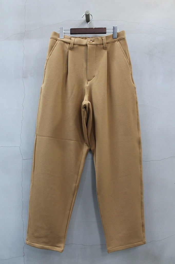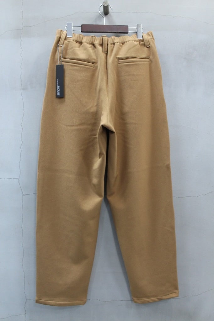 カシミヤタッチのフリース仕立て裏起毛素材を使用したブランド定番のワンタックワイドパンツ。後身ゴムシャーリングに加えてベルトループ付属なのもすでにお馴染みの仕様です。冬季間の寒さに備え、安心の裏フリースパンツをご検討ください