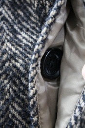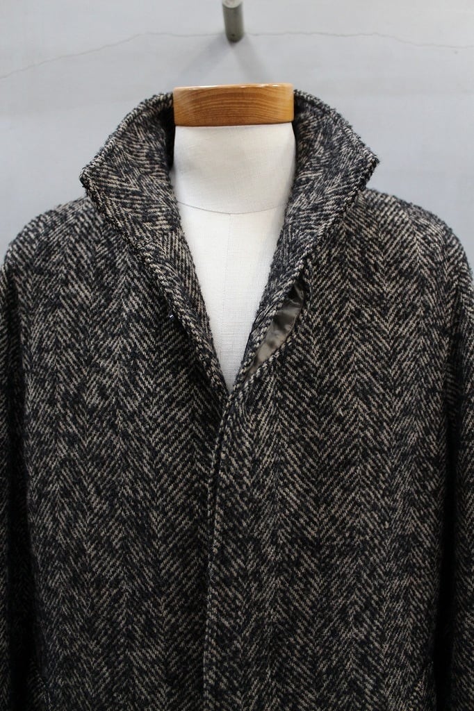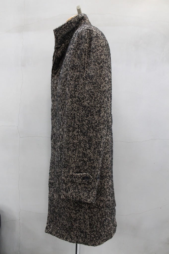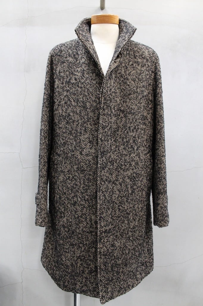 ップのある糸を使い大柄のヘリンボン柄にされた味わいのある素材を使用したスタンドカラーコート。ブランドでは長く愛されてきた定番的存在のコートを今年風にブラッシュアップ。