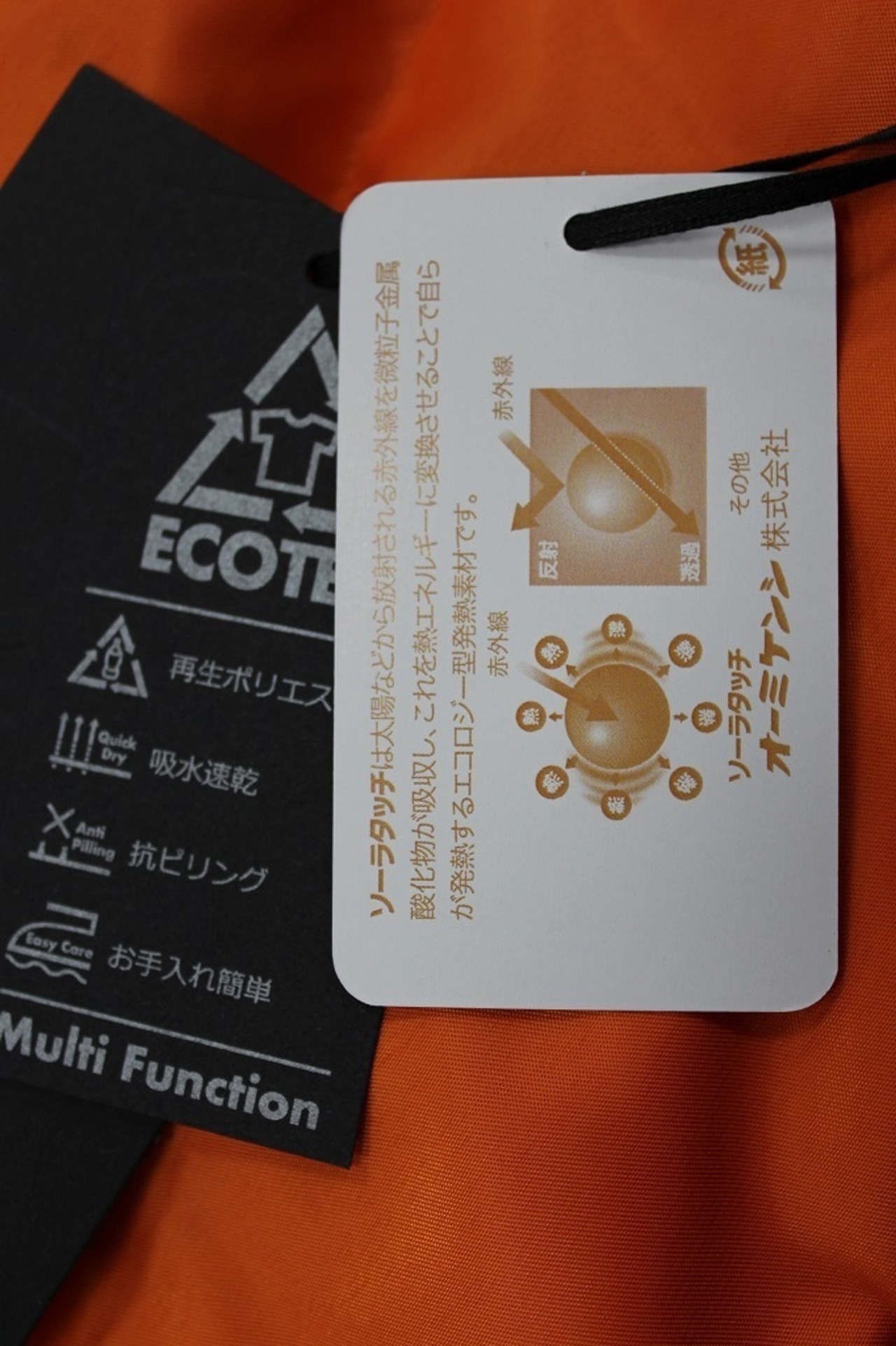高機能でハリコシのある素材を使用しています。中綿には環境配慮の観点から天然ダウンを使わずにリサイクルポリエステルから作成した発熱機能ファイバーフェイクダウンであるソーラータッチを採用し、ブランド理念に基づき企画されたダウンベストです