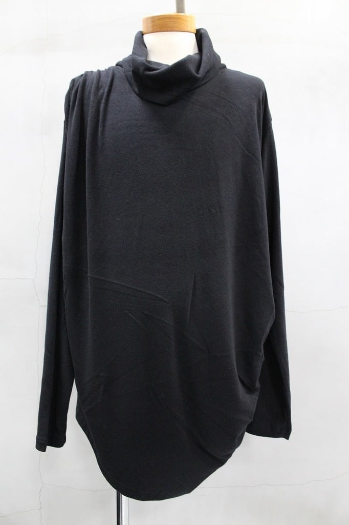 柔らかなドレープと立体感のあるボリュームネックが魅力のプルオーバーカットソーです。縦のラインを意識したやや長めの着丈で、さりげなく体型カバーしながらスタイリッシュに着こなせます。首元はオフタートル風のボリュームネックデザイン。右肩と左脇にはタックとギャザーをあしらい、自然に流れるドレープが上品な印象の一枚です