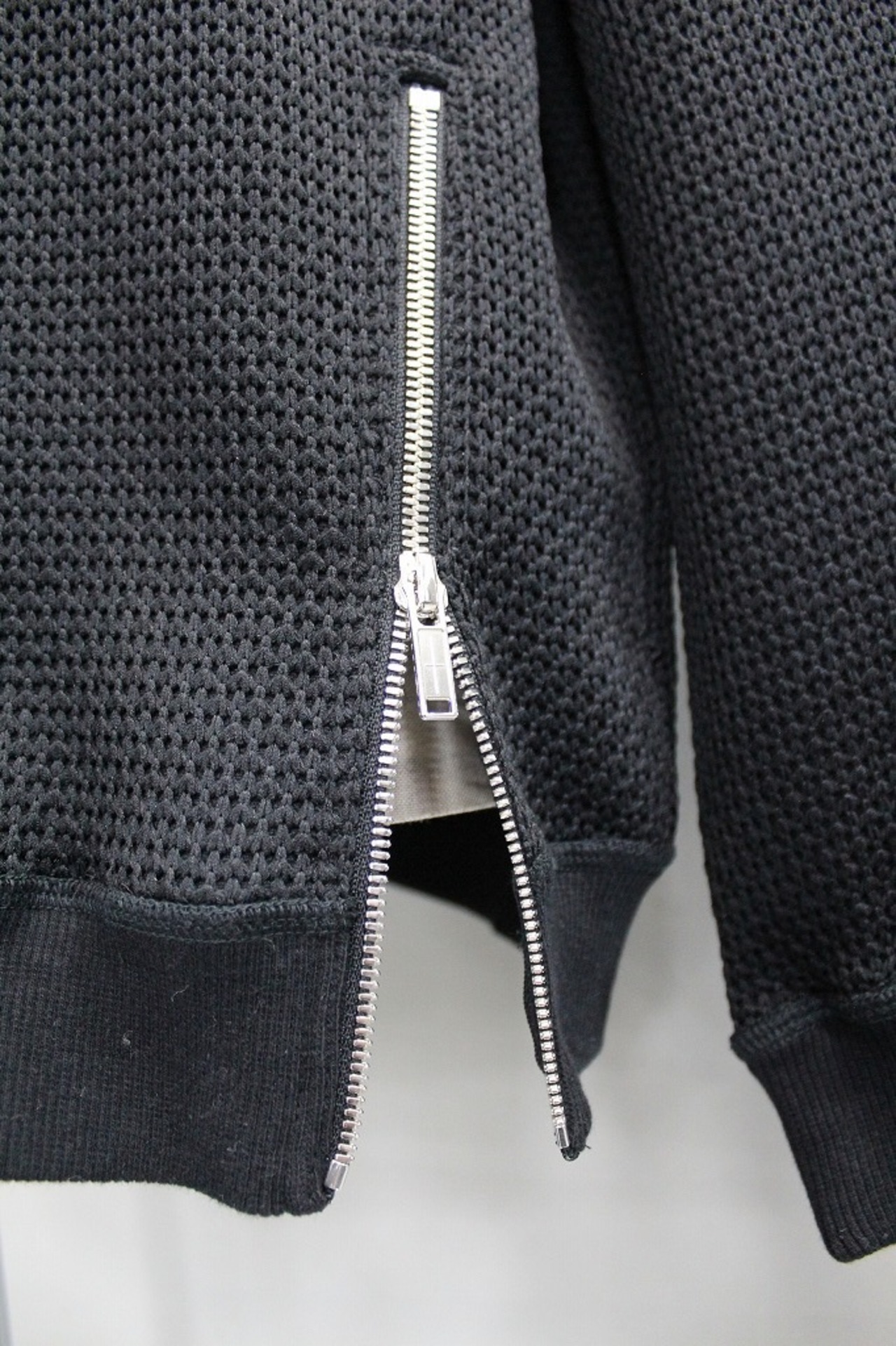 表は8ゲージ、裏は32ゲージのローゲージ✕ハイゲージを組み合わせた表面感と肌触りの表裏異なる追及をかたちにしたプルオーバーです。左裾のオリジナルファスナーを開閉することでシルエットの調整やインナーレイヤードで遊べる仕様になっています。オリジナルファスナーはYKK最高級品のEXCELLAを使用し、引手は別注制作したオリジナルの引手をセットしました