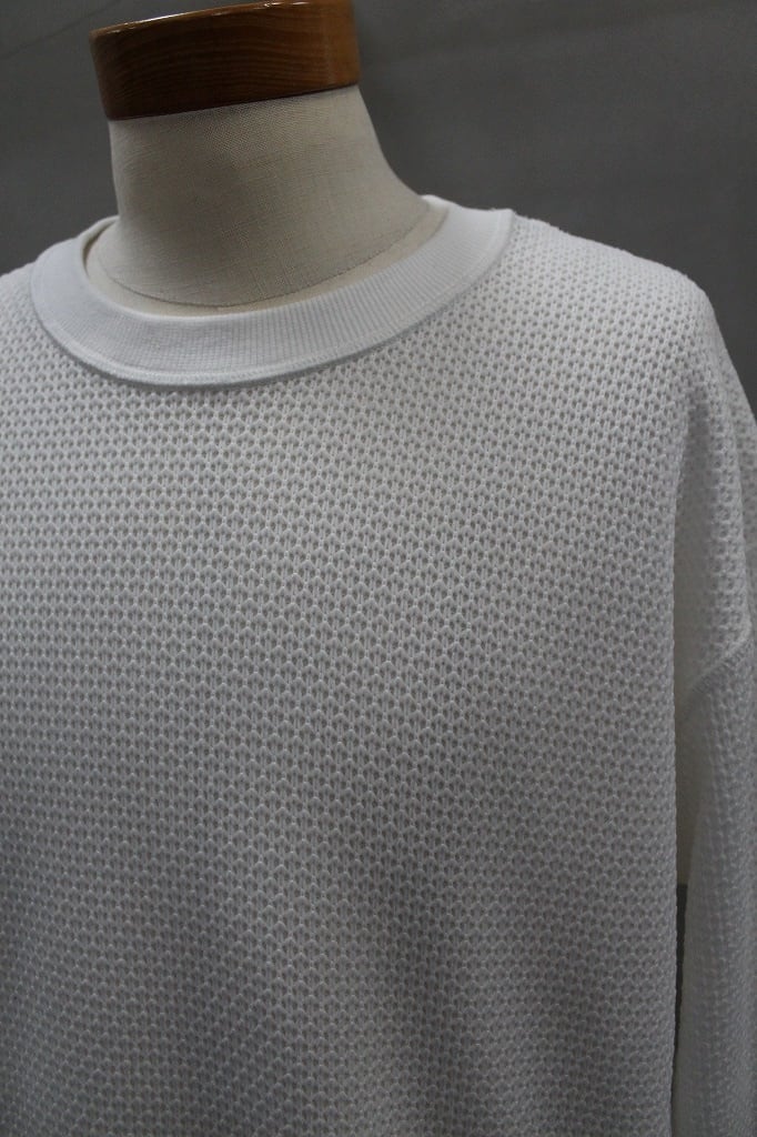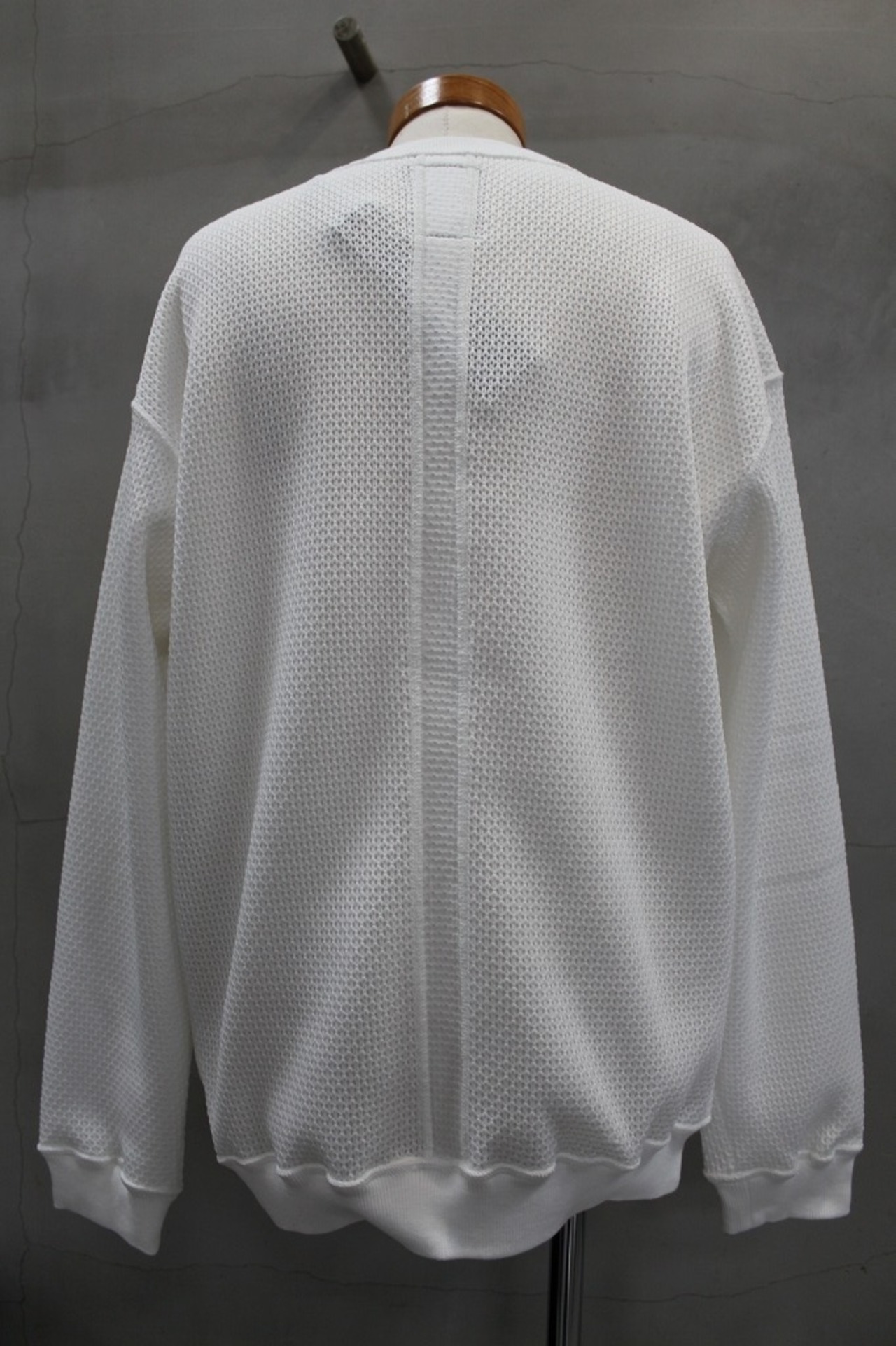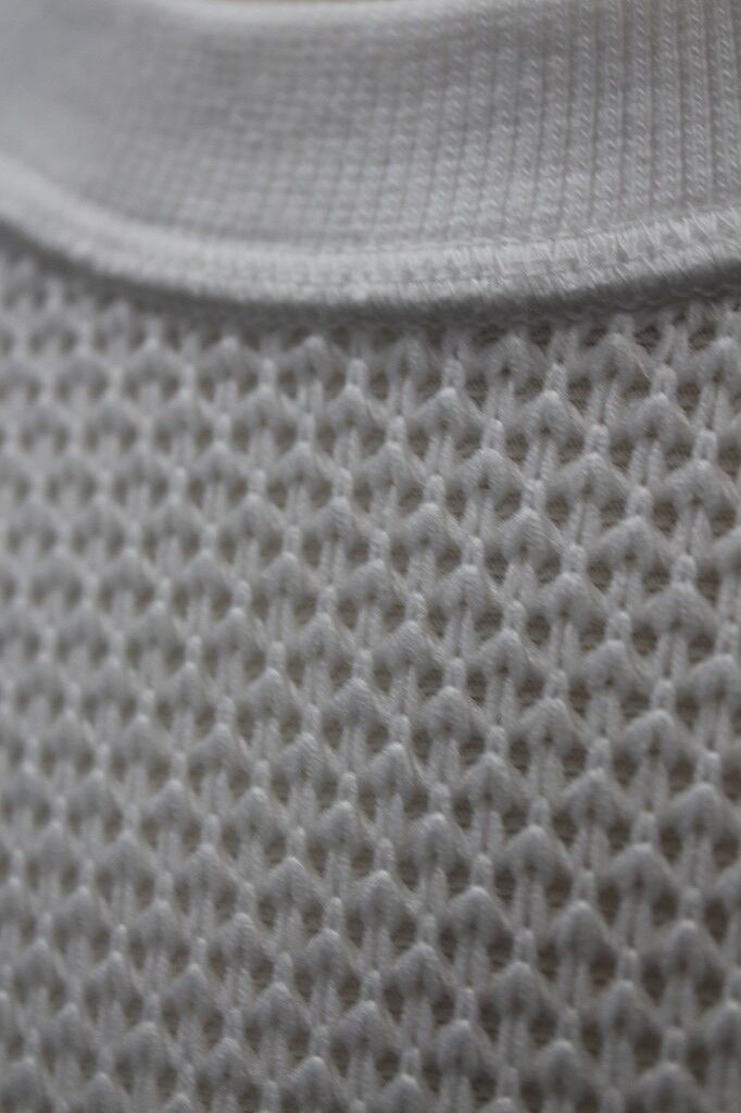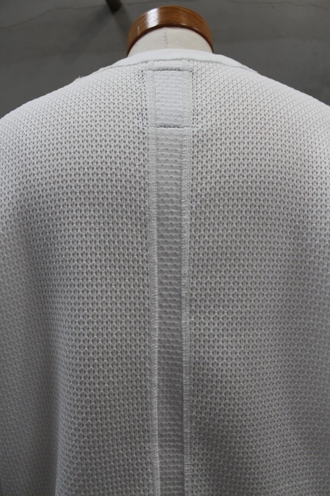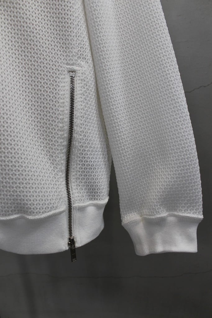 表は8ゲージ、裏は32ゲージのローゲージ✕ハイゲージを組み合わせた表面感と肌触りの表裏異なる追及をかたちにしたプルオーバーです。左裾のオリジナルファスナーを開閉することでシルエットの調整やインナーレイヤードで遊べる仕様になっています。オリジナルファスナーはYKK最高級品のEXCELLAを使用し、引手は別注制作したオリジナルの引手をセットしました
