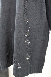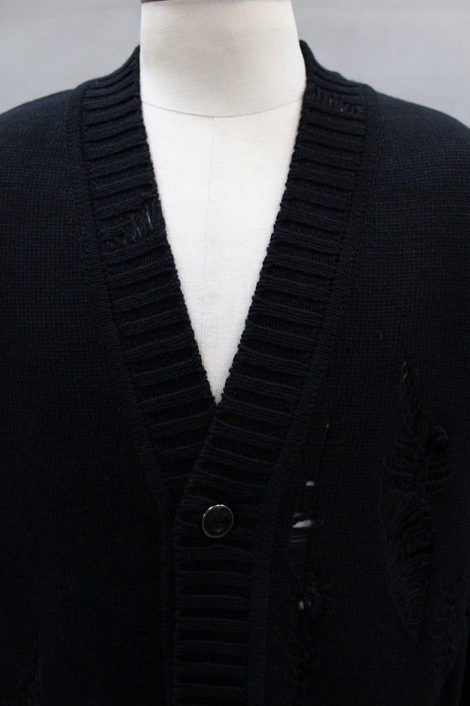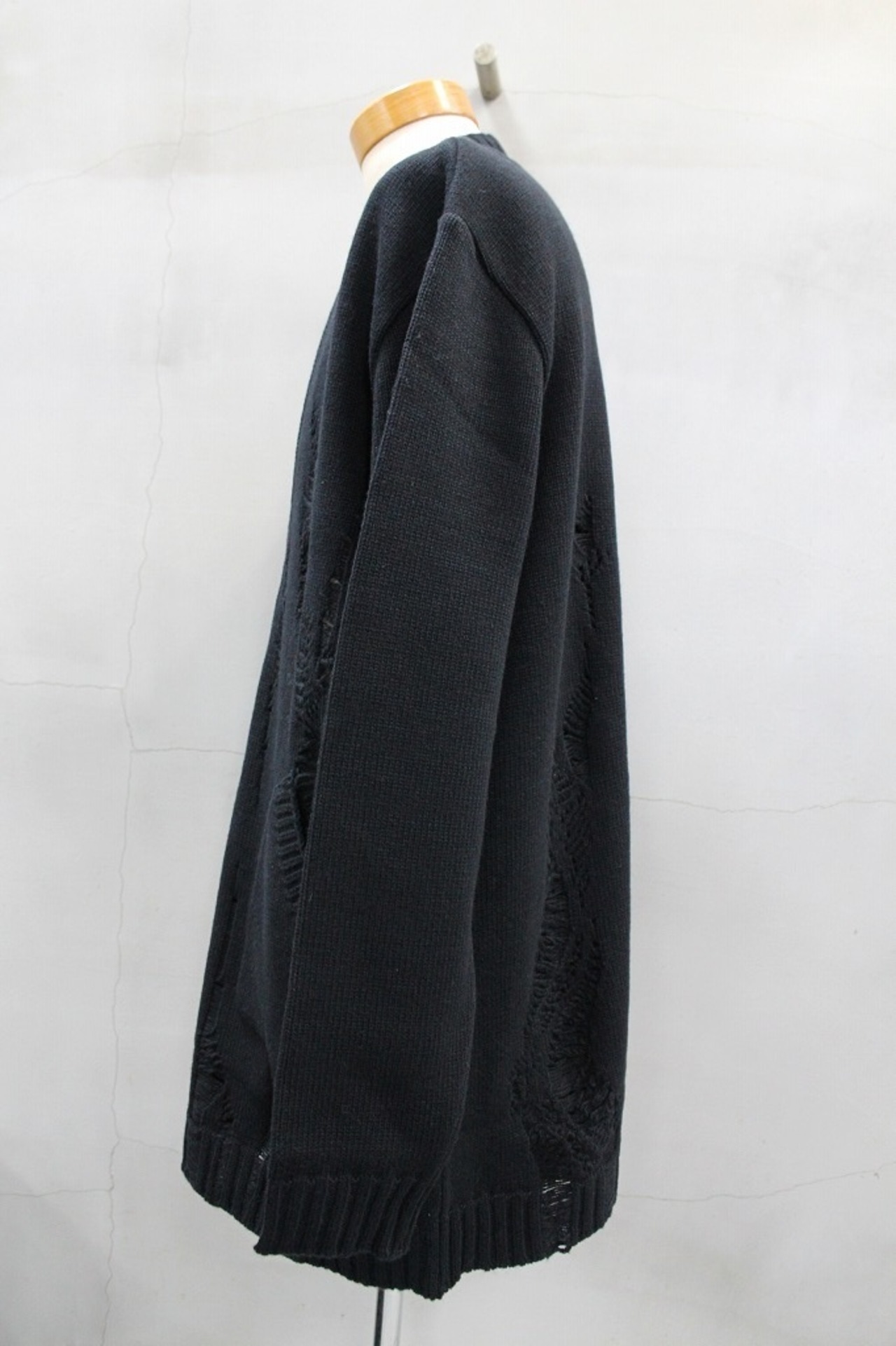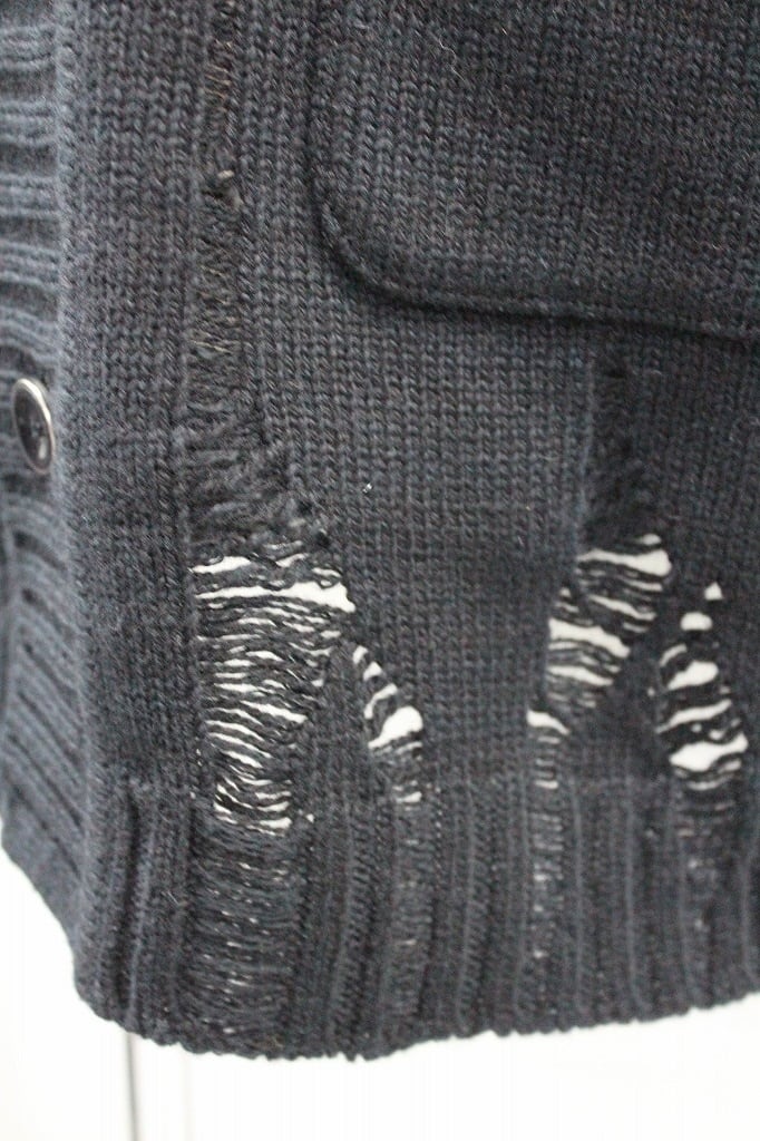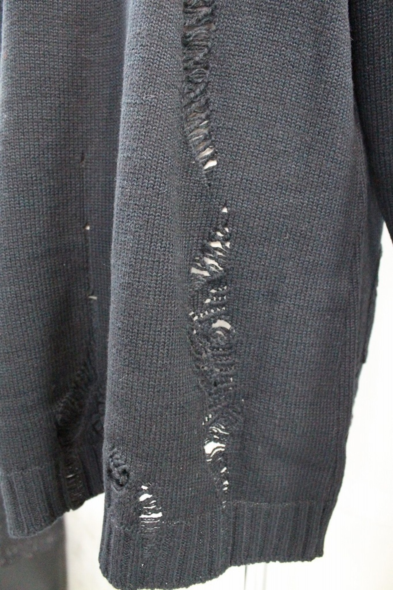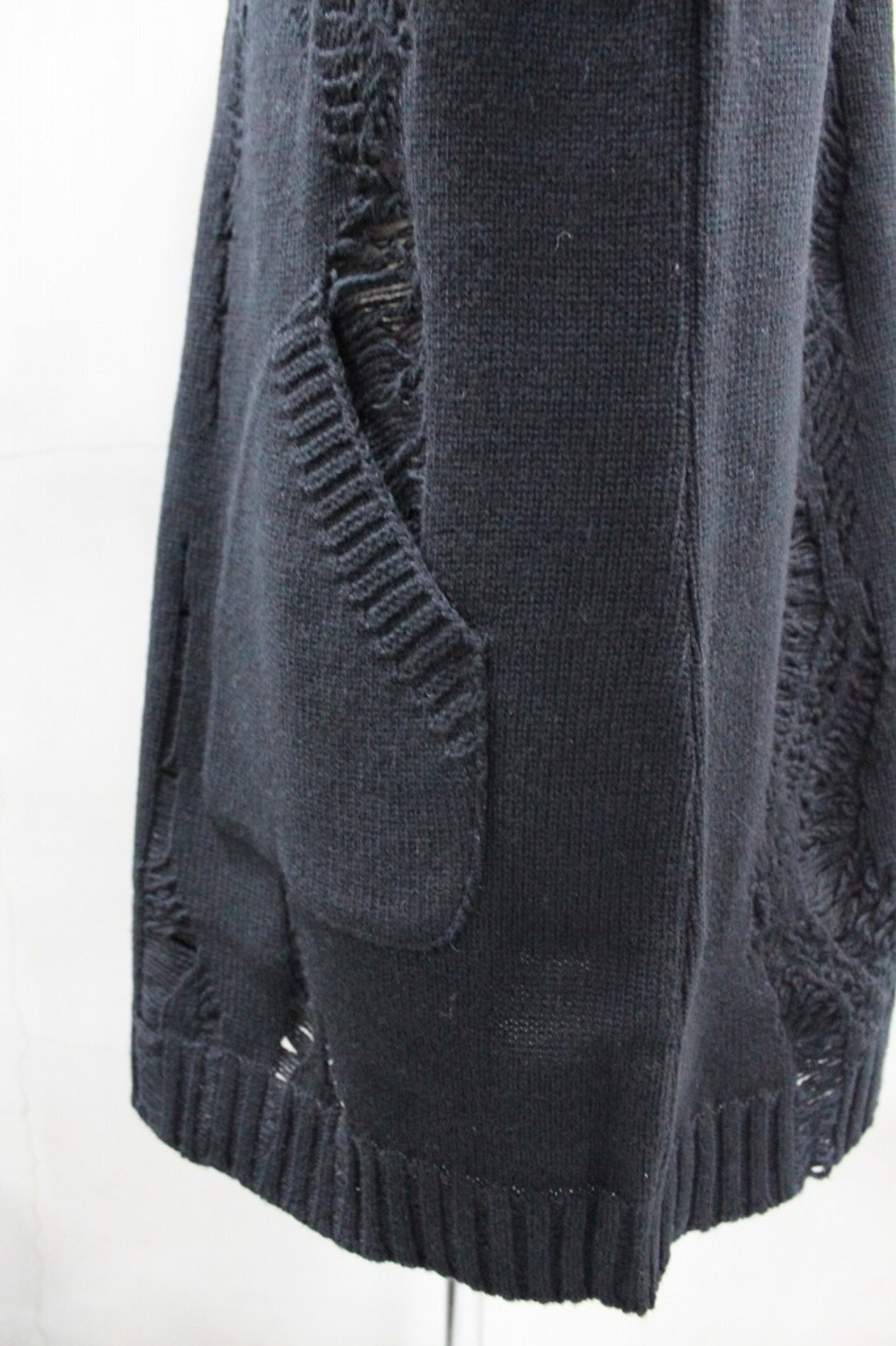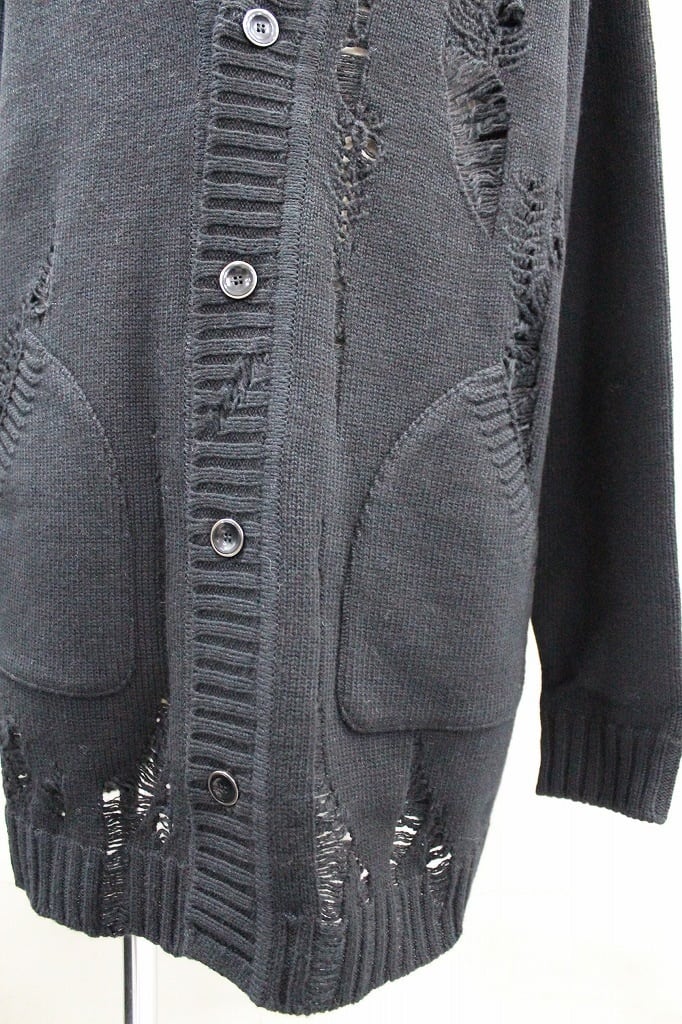 5351POURLESHOMMES ダメージロングニットカーディガン ブラック