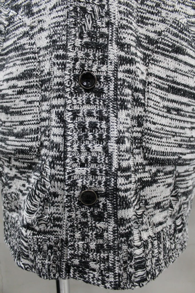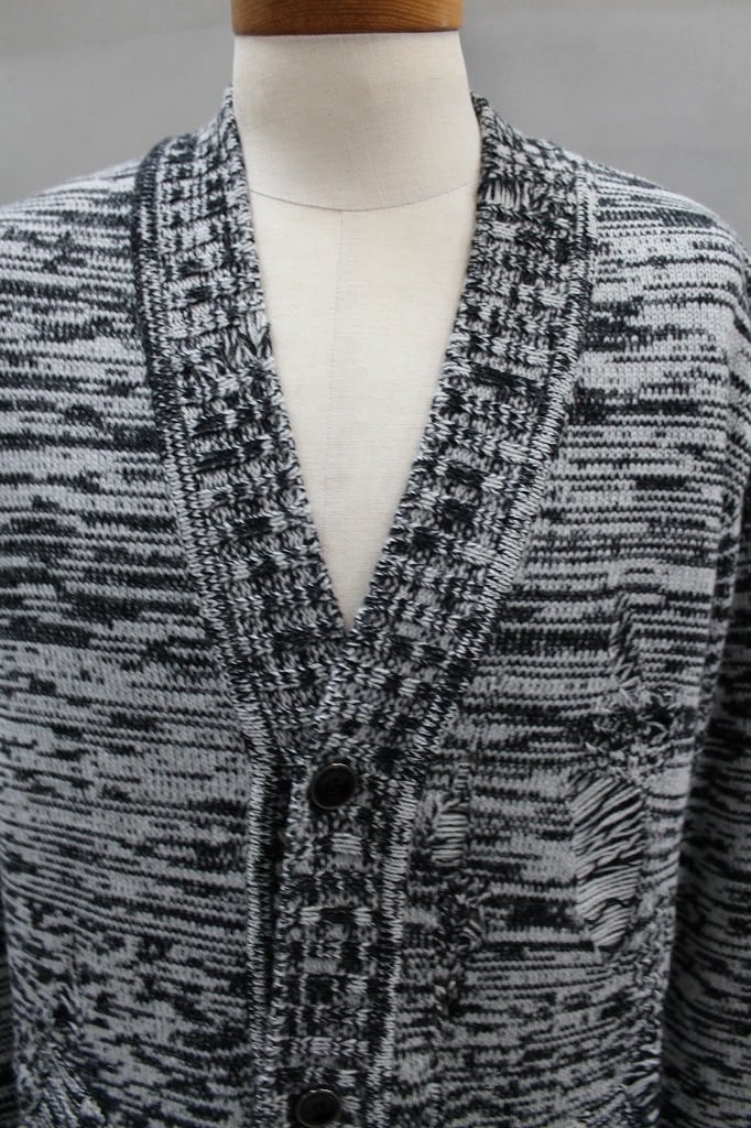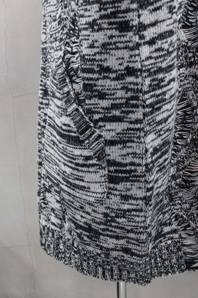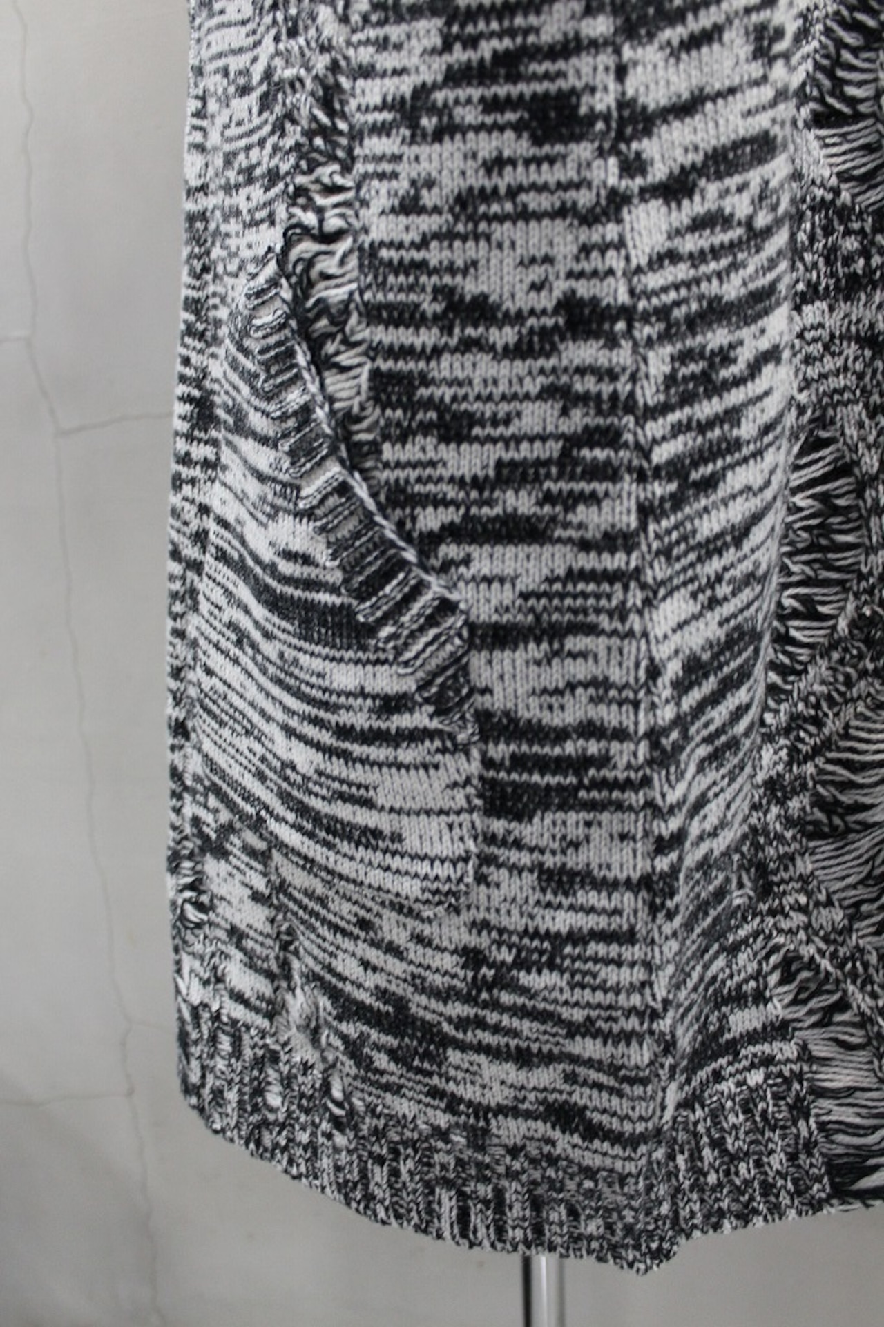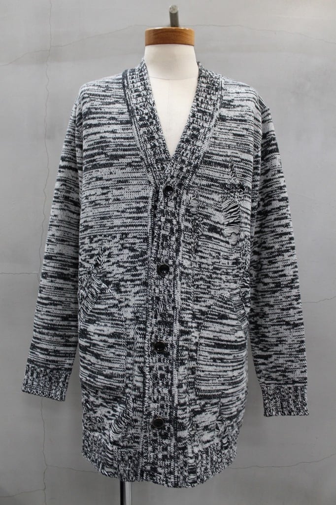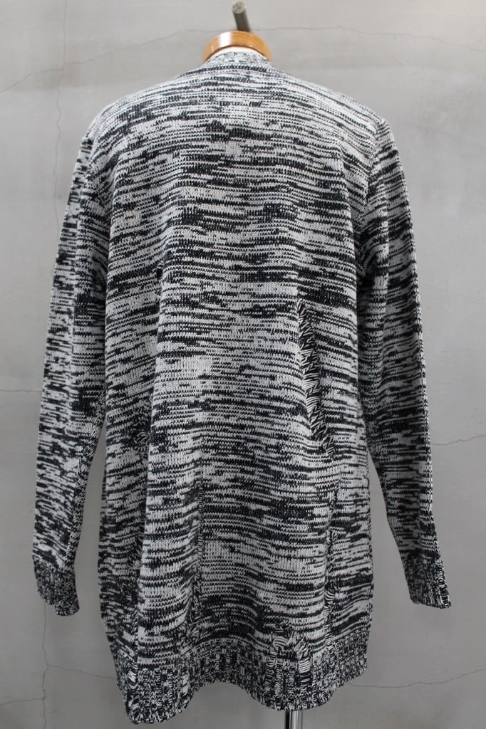 ふんわり柔らかい日本製コットンとラムズウールをバランス良く編み立てた交編素材を使用。ウールとコットン、両方の風合いを感じ取れるニットカーディガンです。前後の身頃とリブにわたる全体にアシンメトリーなダメージ加工を施したニットカーディガン。ヒップまでしっかり隠れるゆったりとしたシルエットは、タートルなどのニットONニットもおすすめですし、カーディガンの上に羽織るジャケット・ブルゾンの裾からさりげなくダメージが覗くよう計算されたバランスに仕上げています