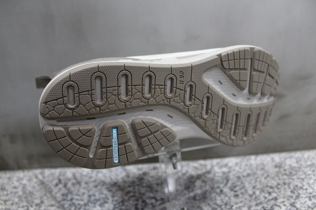 お取り扱い始めからご説明しておりますMOISTHROUGH360の最大の特徴でもある特許取得済みの通気×防水システムをこちらのモデルももちろん採用されています。水を通さず、足の甲と足の裏(シューズ全体360°)から空気と水蒸気を逃がすシューズ内環境をいつでも快適に保つ新通気防水システム。歩行と連動してシューズ内の空気と水蒸気を排出する特許取得のポンプ機能が働き、シューズ内の湿度が上昇しにくく、いつでもシューズ内の環境を快適な状態にキープしてくれます。日本発信のブランドなので日本人の足に合うよう設計されているのも魅力のひとつ。国内でも著名な木型職人に依頼し制作したオリジナルラスト(木型)を採用。足入れの良さと美しいシルエットを共存させています