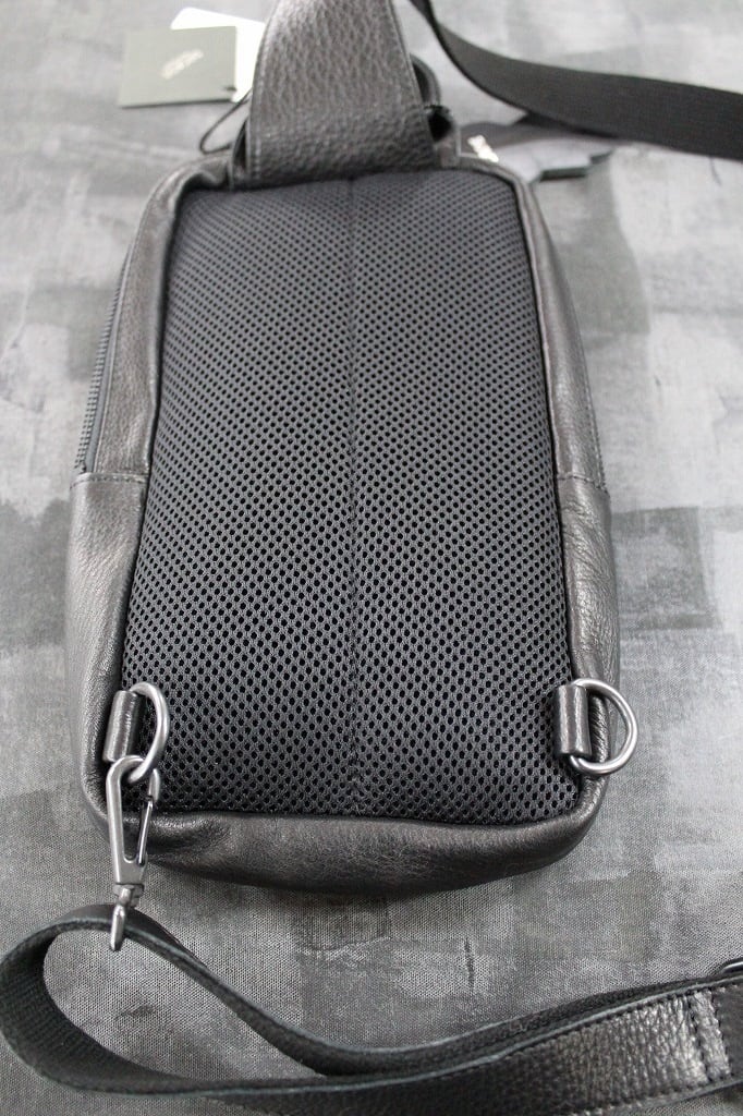ミドルサイズのボディバッグは斜めにZIPを配したアウトポケットが特徴的。長さ調節可能のショルダーベルトは左右どちらでお持ちになりたいかのお好みで付け替えが可能です