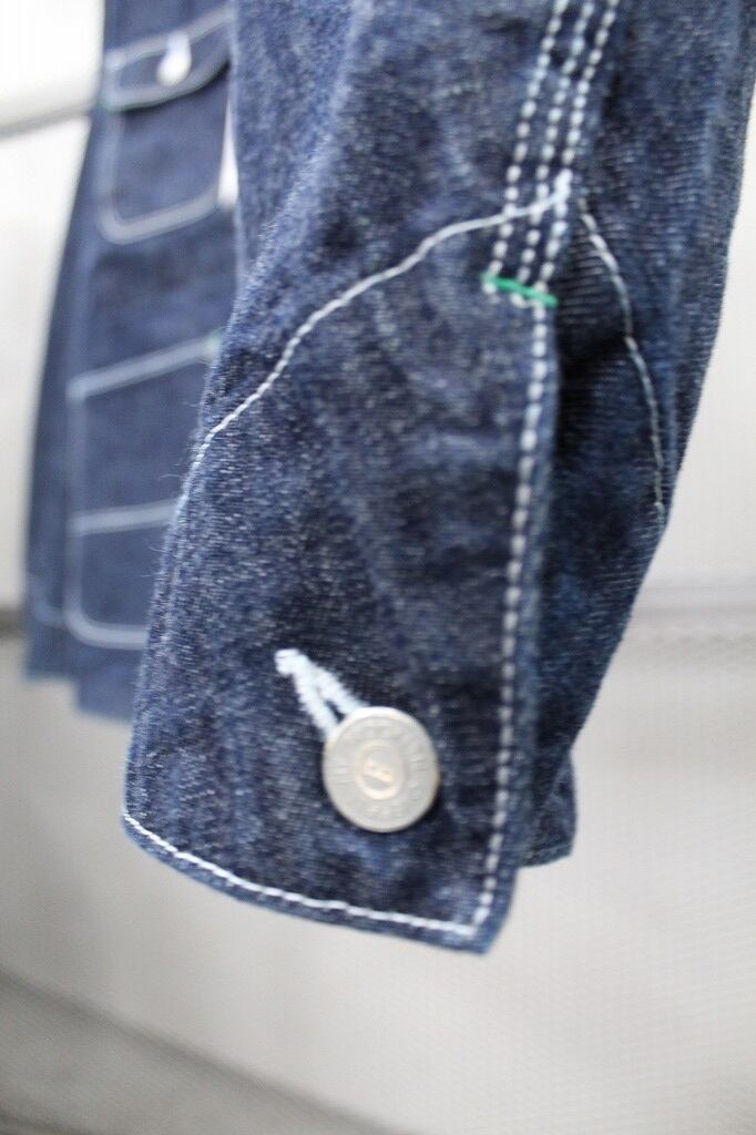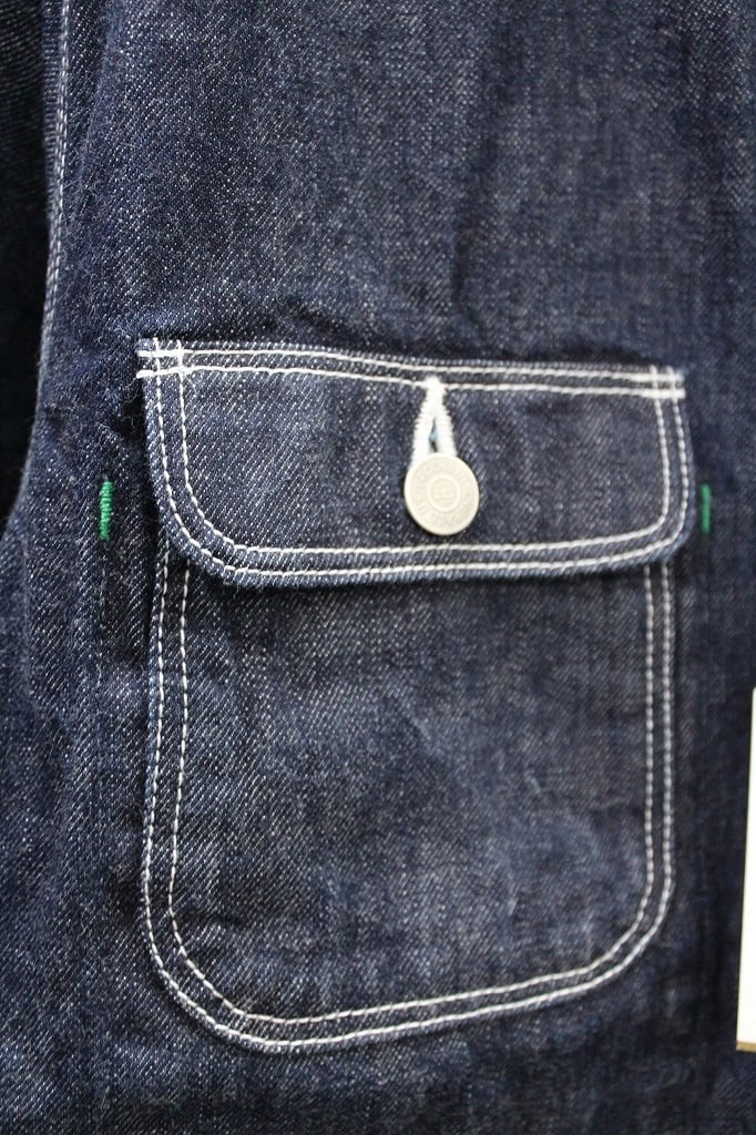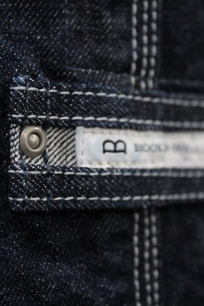 BROOKLYNOVERALLの定番で使用している13.5OZのデニム生地。備後地区で綿糸からデニム生地へ作り上げるため、各工程の職人さんが仕上げた拘りの生地です。1970年代に製作されたカバーオールを参考にデザインしており、王道なワークテイストのカジュアルが楽しめる1枚に仕上がっています。最初は少し硬さがありますが馴染みの良い素材のため、着こむほどに柔らかく着やすい生地に育つのもデニムアイテムの楽しみです