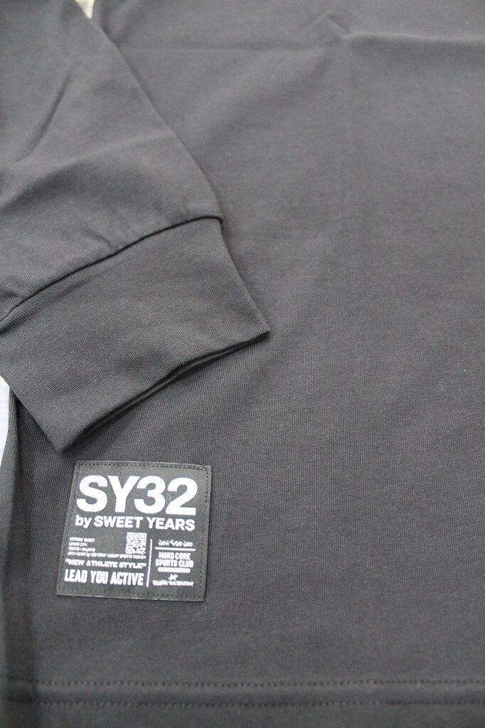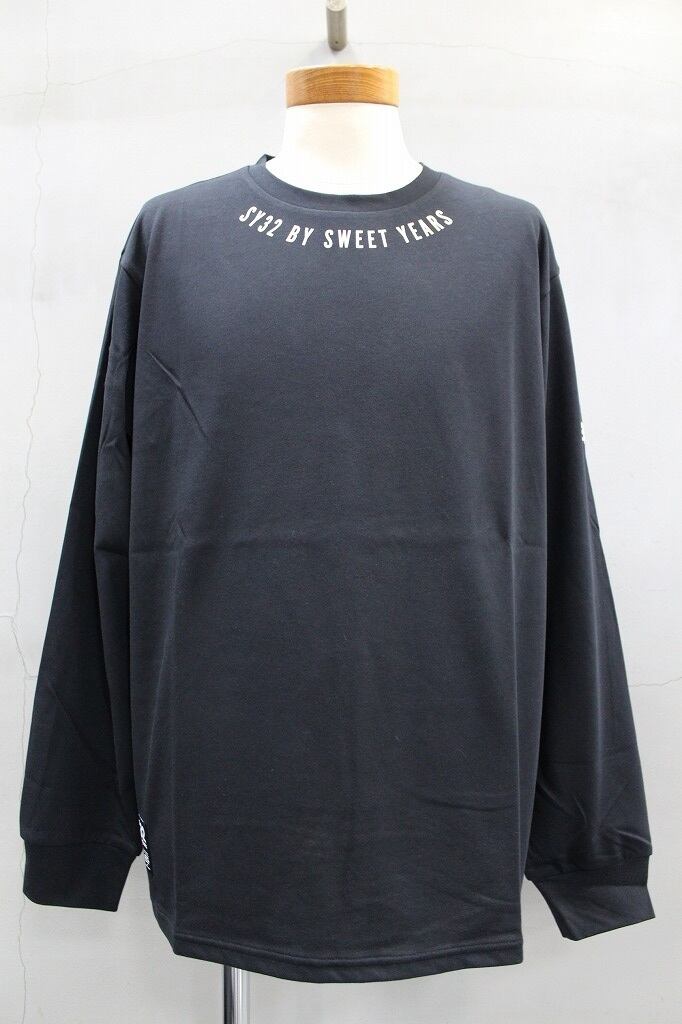 SY-32 by SWEETYEARS NECK ROUND PRT L/S TEE ブラック