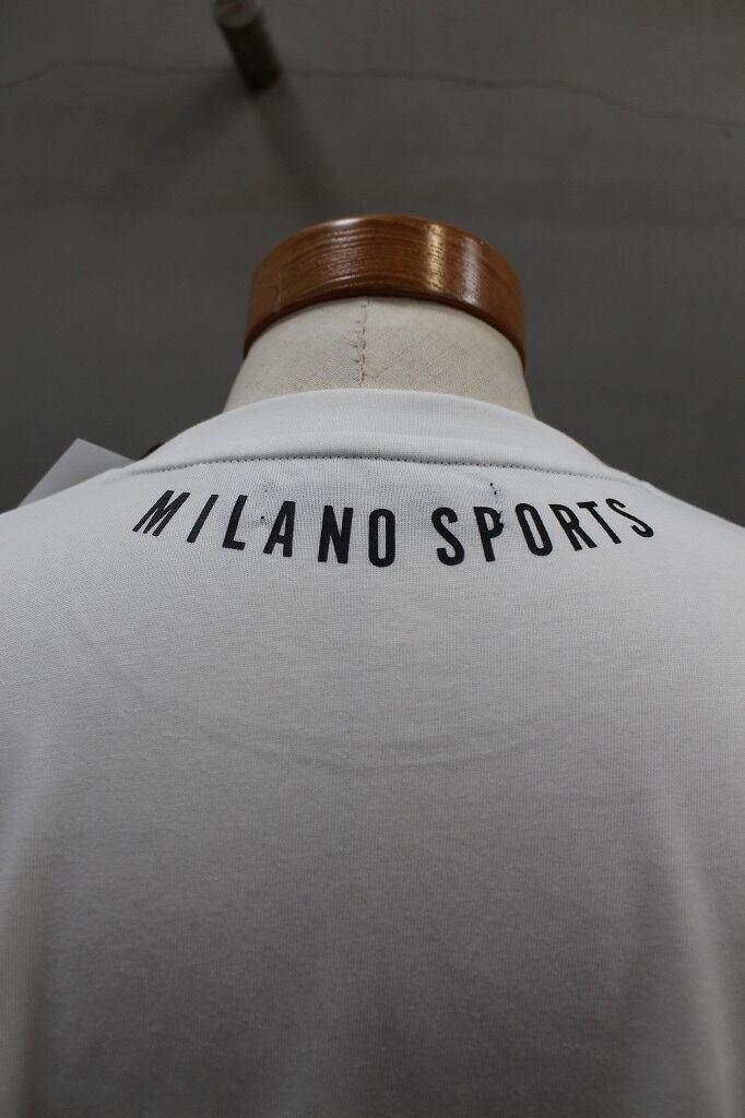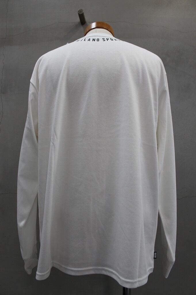 フロントネックラインには「SY32 BY SWEET YEARS」のロゴをアーチ状にレイアウト。視線を自然に上へと導き、シンプルながらも印象に残るデザインに仕上げています。バックネックには“MILANO SPORTS”のプリントを配置し、ブランドのルーツとスポーツテイストをさりげなく主張。素材の表面にはコットンのナチュラルな風合いを、裏面にはポリエステル素材を採用したコットンポリロングスリーブTシャツです。見た目はカジュアルながら、袖を通した瞬間にわかる軽さとすっきりとした着心地が魅力。肌に触れる裏側はポリエステルならではのドライなタッチで汗ばむシーンでも快適さをキープ。コットン100%のロンTに比べ、だれにくく型崩れしにくいため、デイリーからアクティブシーンまで幅広く対応します