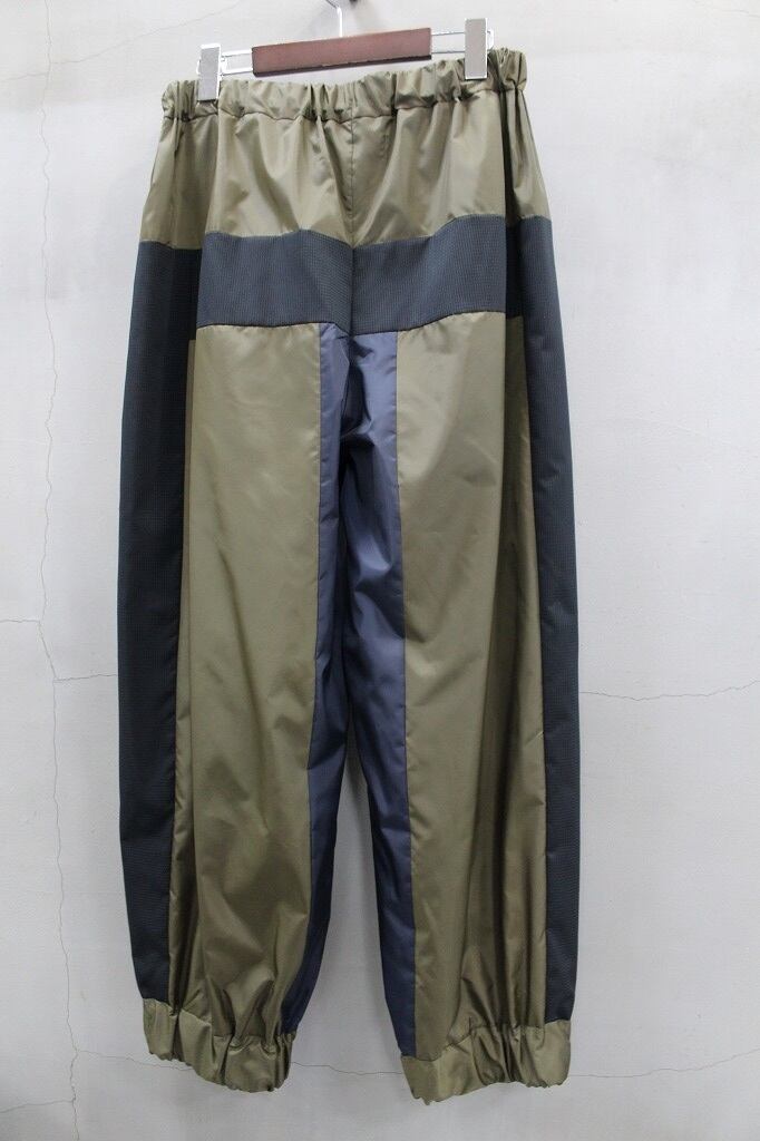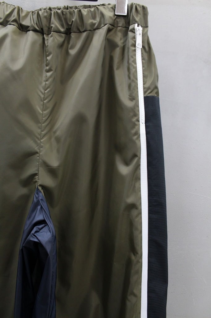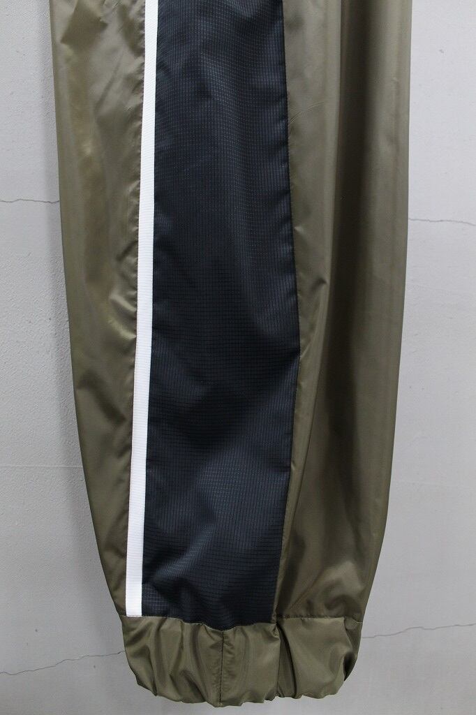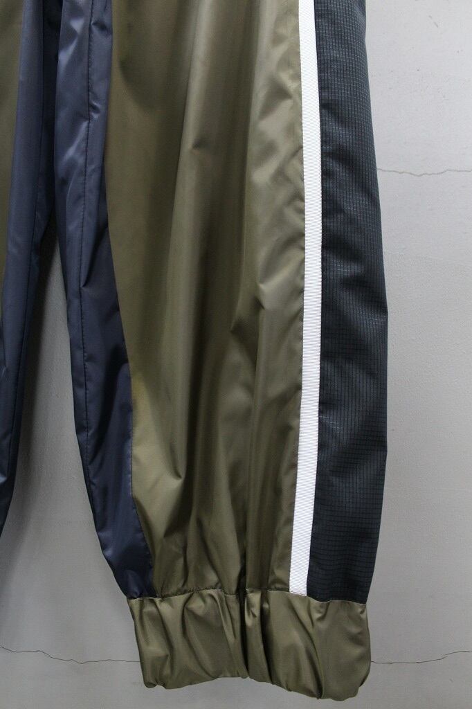 軽量でハリのある風合いのタフタ素材を使用し、配色部にメッシュ素材を用いて切り替えたパンツ。ポケットはファスナー仕様。裾にゴムを通しスポーティーさを演出しています
