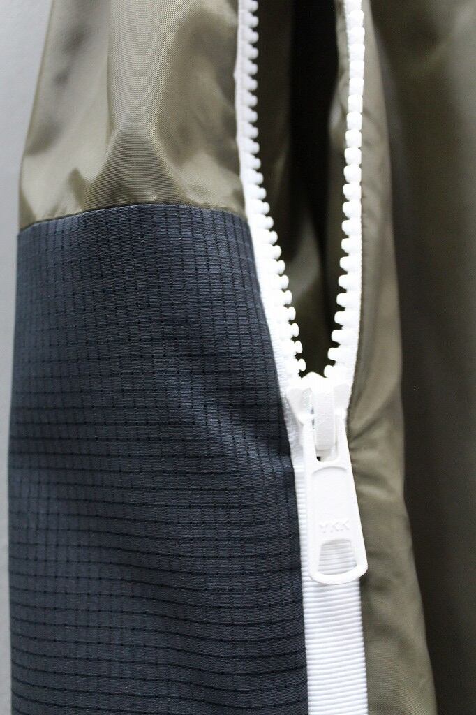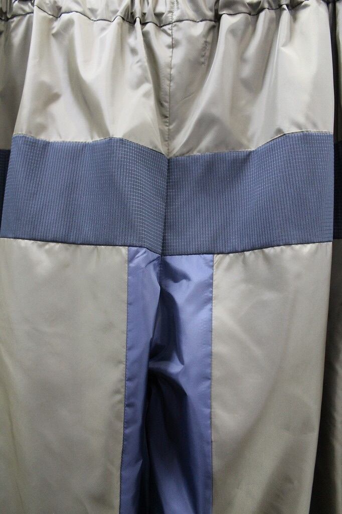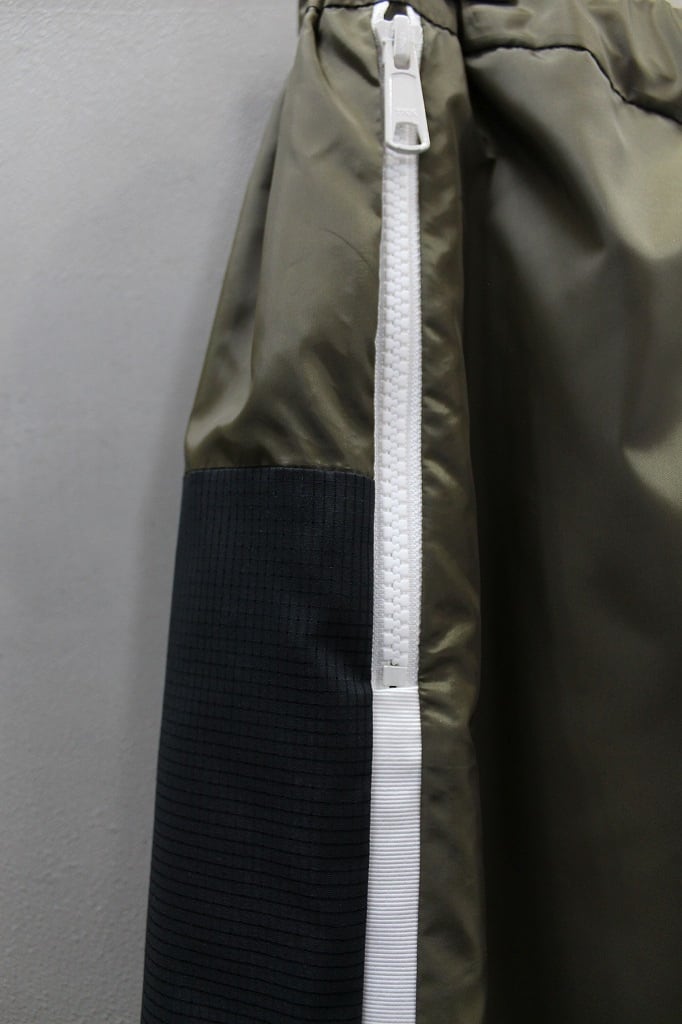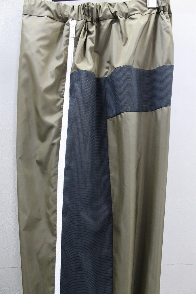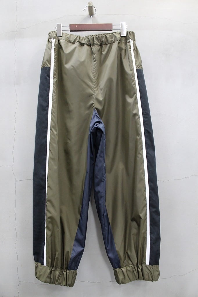 軽量でハリのある風合いのタフタ素材を使用し、配色部にメッシュ素材を用いて切り替えたパンツ。ポケットはファスナー仕様。裾にゴムを通しスポーティーさを演出しています