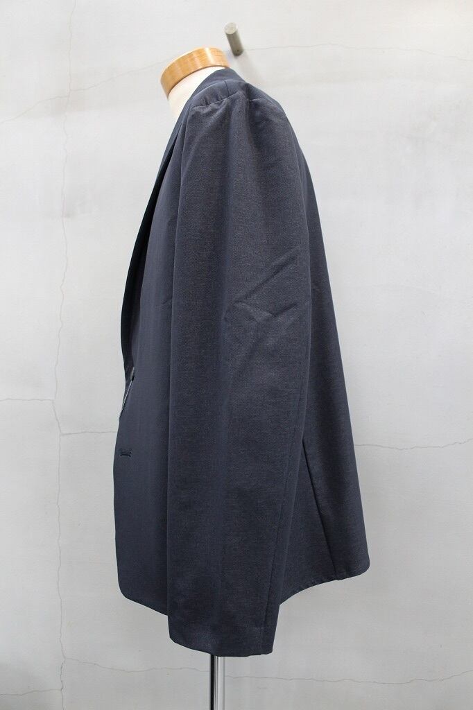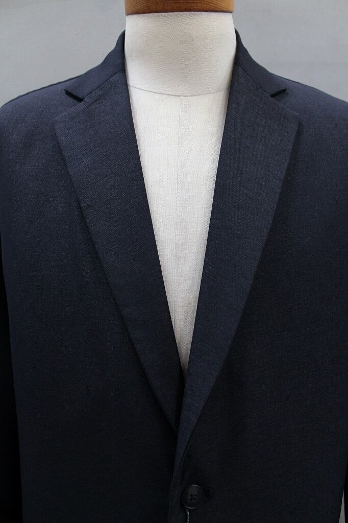 優れた伸縮性で快適な着心地のPe/Nダブルクロス。中肉厚でハリコシがあり、ナイロン特有のドライタッチとマットな表情が特徴です。今シーズン、新型となるイージージャケットです。肩幅はあまり広くはないですがゆったりとしたシルエットで着丈をショートのバランスで仕上げています。テーラー襟ながらサイドシームポケット、袖口もボタンがなく、ブルゾン感覚で羽織れるジャケットです。同素材のワイドパンツとのセットアップもおすすめです