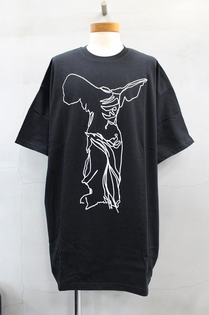 細番手の糸で編み立て、なめらかな肌触りと程よい落ち感が特徴のブランドで長年にわたり人気の定番素材でもある天竺素材を使用。今季のテーマ「Greece-sporty×mode-」を基に「サモトラケのニケ」をオリジナルプリント。身幅は従来のゆったり幅にロング丈のシルエットにプリントを施し、着回しの効くアイテムに仕上げました。