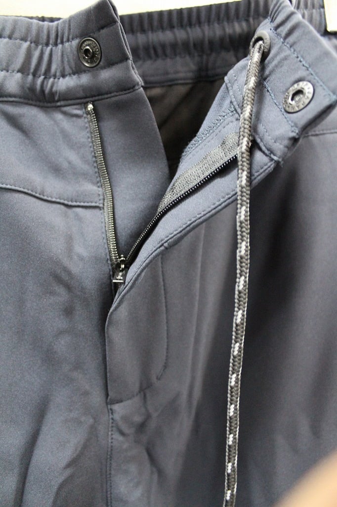 SOLOTEX® Eco-Hybridの特性である速乾吸湿性を備えたサラッとした肌触りが特徴のイージーパンツです。シワになりにくく、ストレッチが効いているため、履き心地は抜群です。スポーツにもややフォーマルな使い方も出来る大人のための洗練されたパンツに仕上がっています。ウェストはゴムとスピンドル(内側から紐が出る仕様)でイージー仕様になっており、ベルトループや前後2箇所のDカンも装備されています。右サイドにはロゴ入りのファスナーポケットがあり、機能性も兼ね備えています。同素材のトラックジャケットとのセットアップもおすすめです