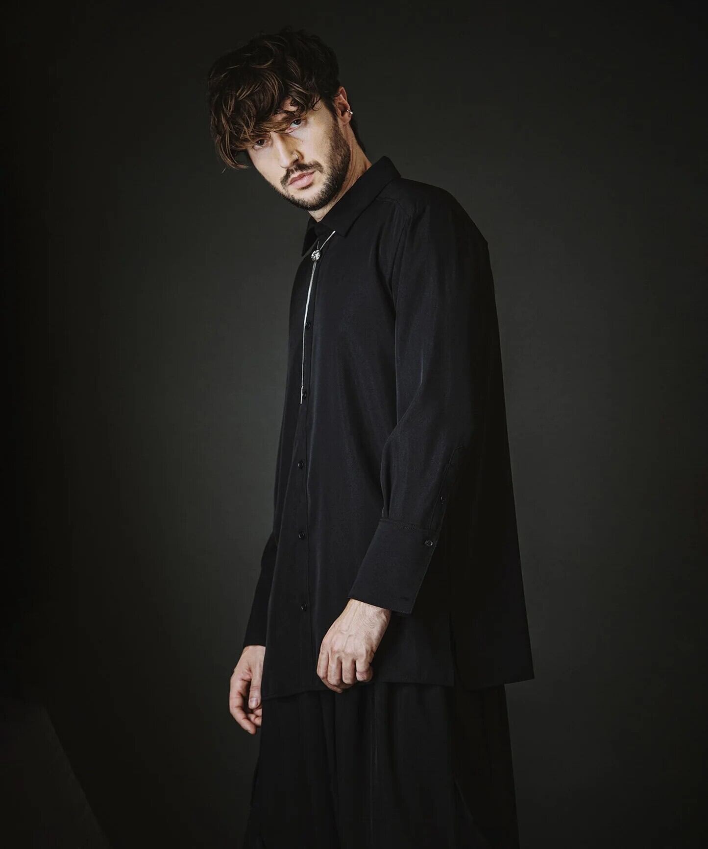 レギュラーフィットのサイズ感に着丈の長さを加えたモードなスタイリングに必須のロングシャツ。カフスはターンナップ仕様でアレンジが可能。プレーンなデザインにより汎用性の高い1枚になっています