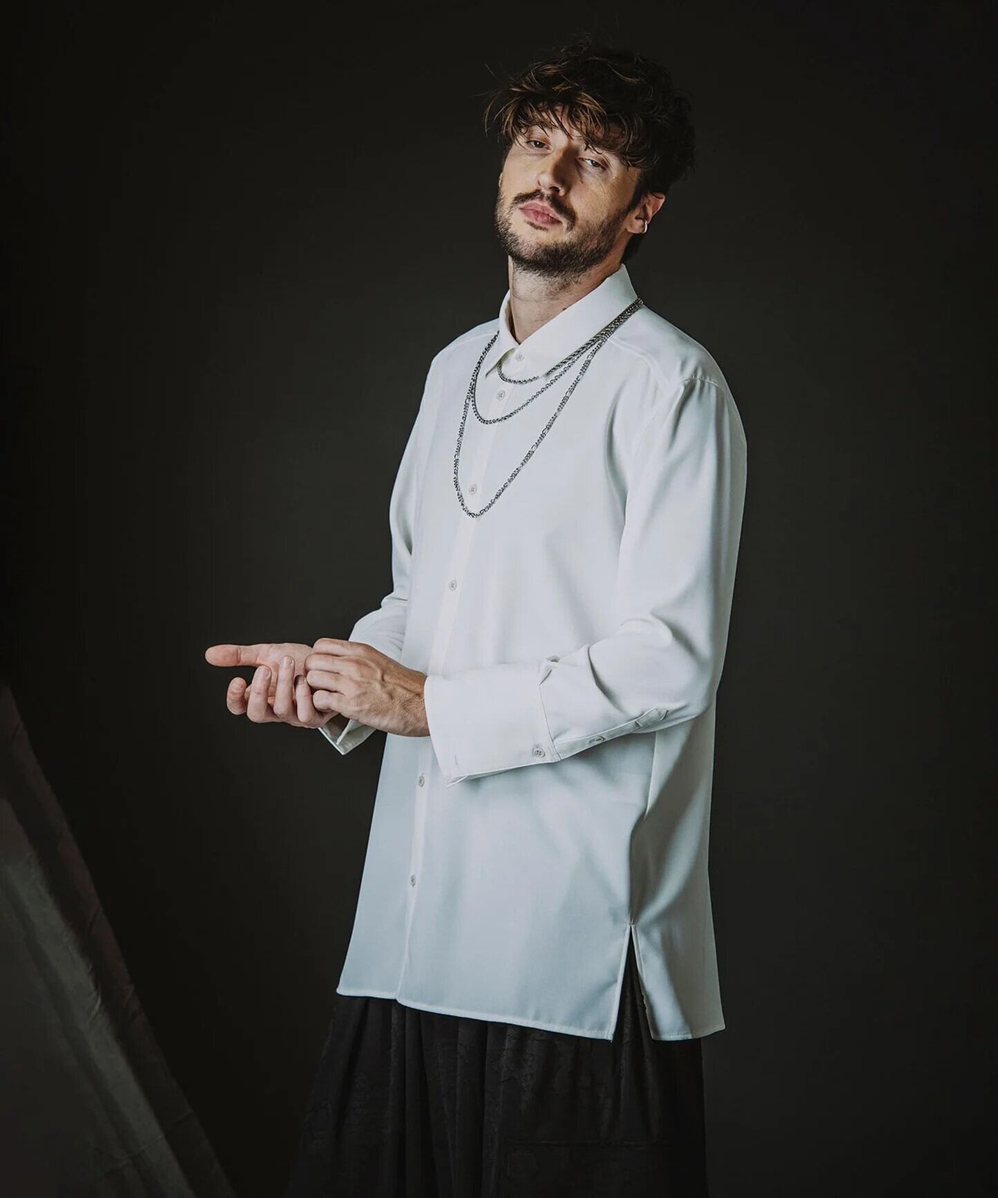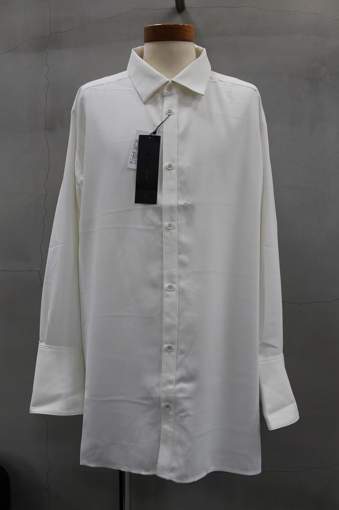 レギュラーフィットのサイズ感に着丈の長さを加えたモードなスタイリングに必須のロングシャツ。カフスはターンナップ仕様でアレンジが可能。プレーンなデザインにより汎用性の高い1枚になっています