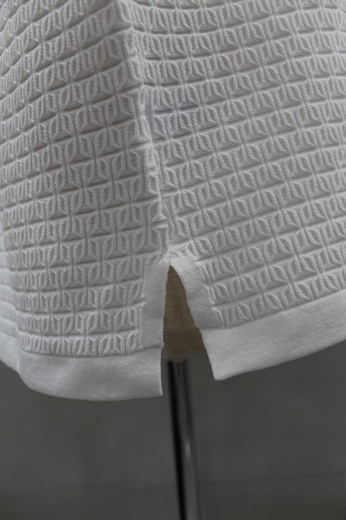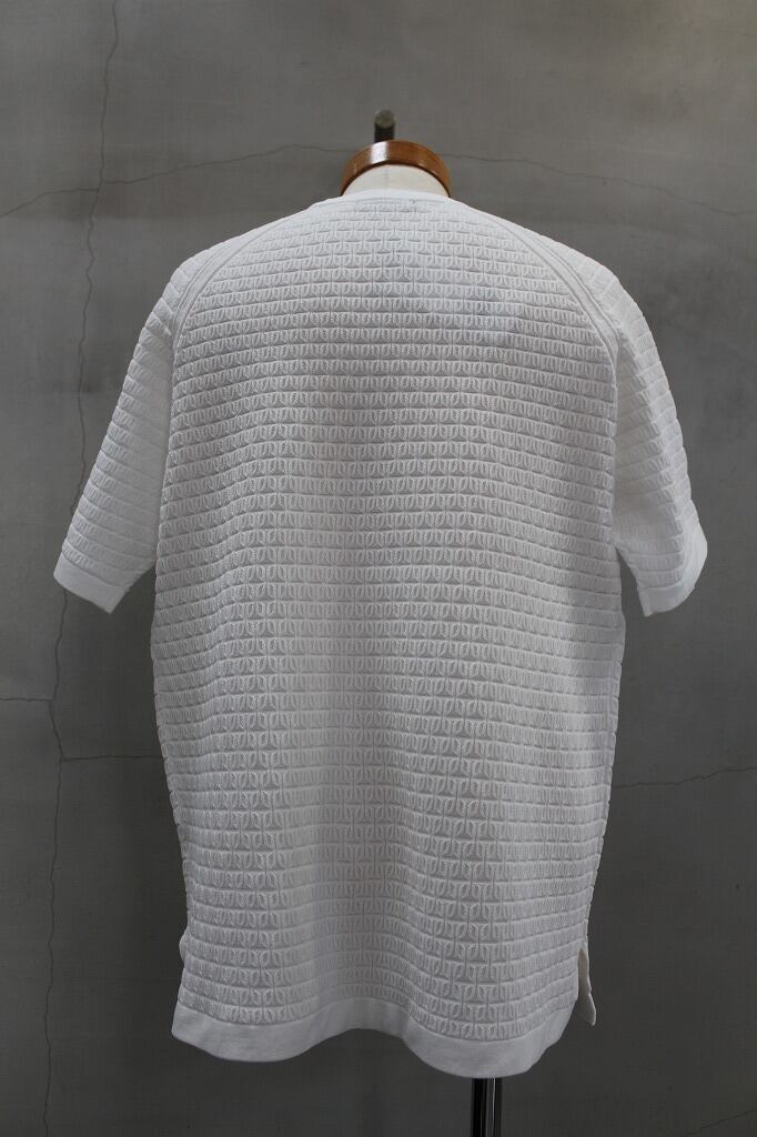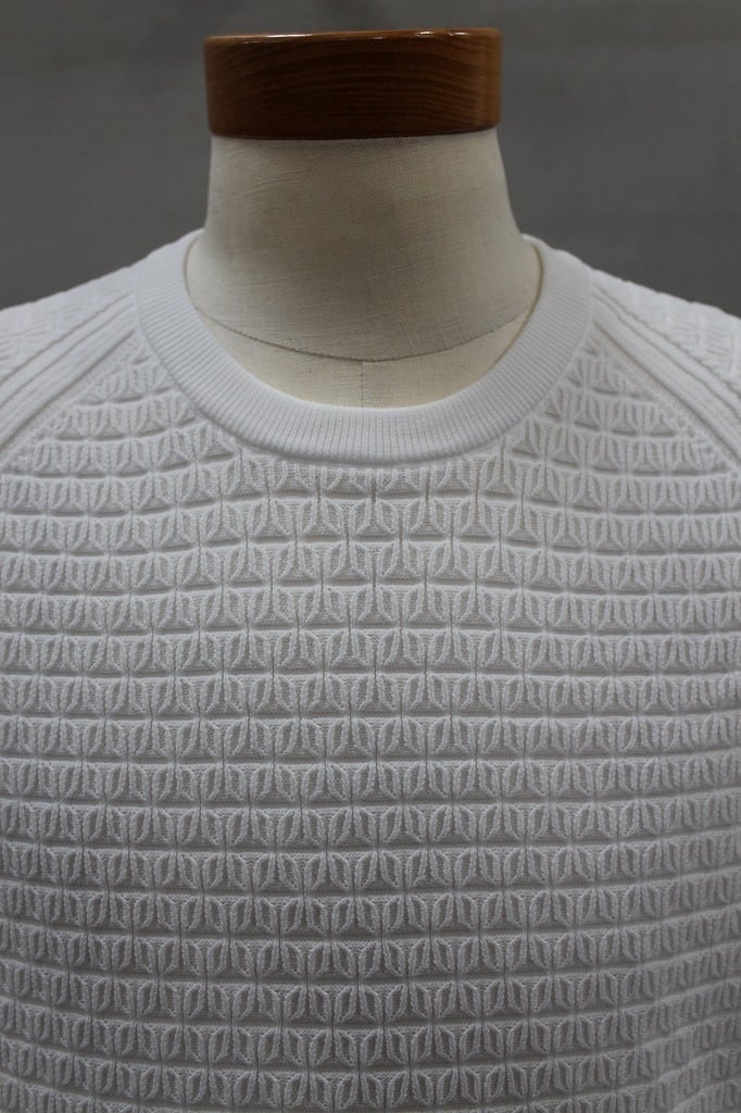 14ゲージのウォッシャブルニットTEE。圧倒的な軽さで着ていることを忘れるほど。派手過ぎないブリスターのバタフライ柄で編み立てており、普通のTシャツよりも高見えし、大人の上品な半袖アイテムとしてオススメです
