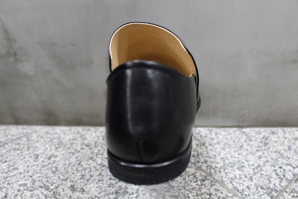 シボが特徴の国産の牛革(ステア)をソフト仕上げし表面をグレージング加工した皮革を使用したスリッポンシューズです。フラットシューズをベースに、甲を覆うドレープが特徴のスリッポンシューズです。深いアッパーに対してくるぶし周りがしっかり見えるカッティングは足がきれいに見える計算されたパターンが魅力的。セットアップ類に合わせる革靴に、ワイドパンツ・ワイドデニム・スキニーパンツまで幅広く合わせることが出来るシューズです