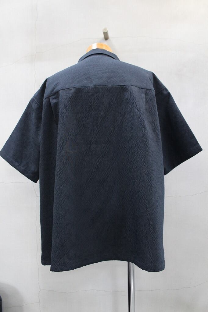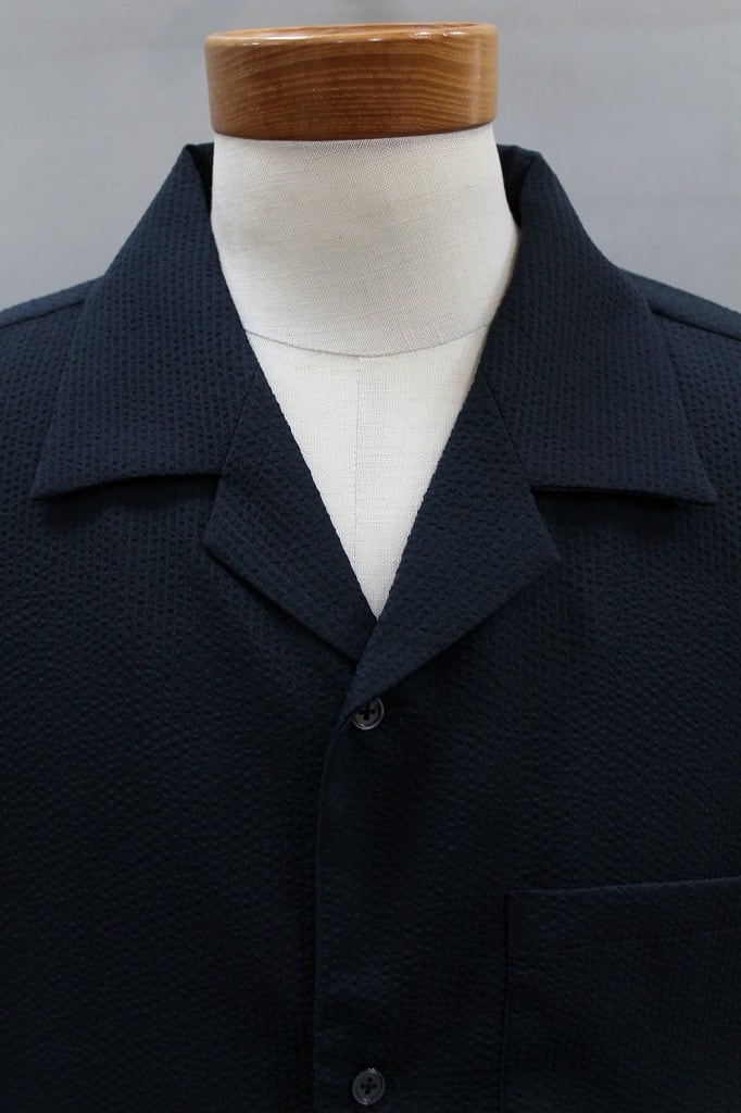 ECOTEC糸を追撚することで非常にドライな風合いになったサッカー素材を使用した半袖開襟シャツです。生地表面の微光沢と凹凸が特徴のシアサッカー生地は汗をかく季節にも肌離れが非常に良く快適な着心地を与えてくれます