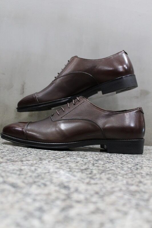 国産姫路製のソフトレザーとイタリア製モールドソールを使用した内羽タイプのドレスシューズです。クラシカルなスクエアトゥの内羽根タイプのストレートチップで、ヒール高3cm、 シャープな切替でスタイリッシュに仕上げた定番ともいえるタイプはスタイルに左右されず合わせやすいプレーンなモデルです。革の生産工程全てを国内で行ったmade in JAPAN