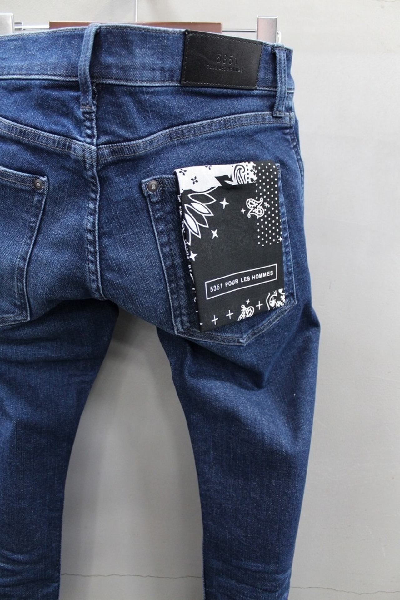 5351といえば、これ と言えるブランドアイコンのスキニーデニムです。縦横2WAYに伸縮する11Ozのストレッチデニム素材を使用。パワーストレッチ生地でキックバックに優れ、脚全体にフィットして美脚効果があると変わらぬ評価を頂いています。ストレッチデニムとは思えない拘りのリアルなヴィンテージ感とタイトで吸い付くような綺麗なスキニーシルエットをお試し下さい