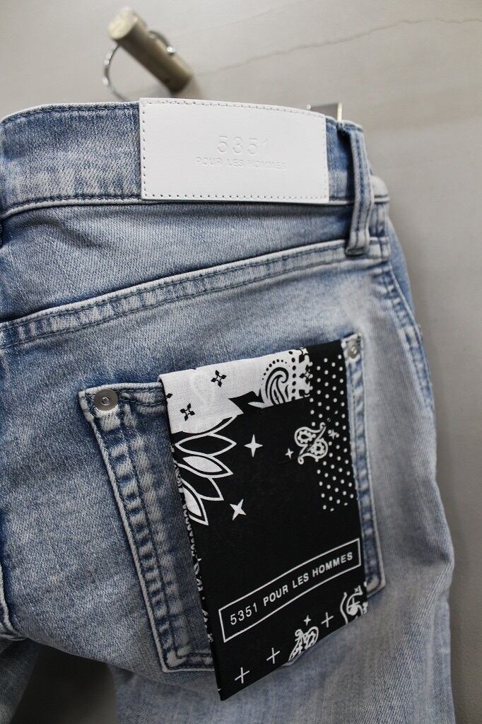 5351POURLESHOMMES ハイパーストレッチスキニーデニム ライトブルー