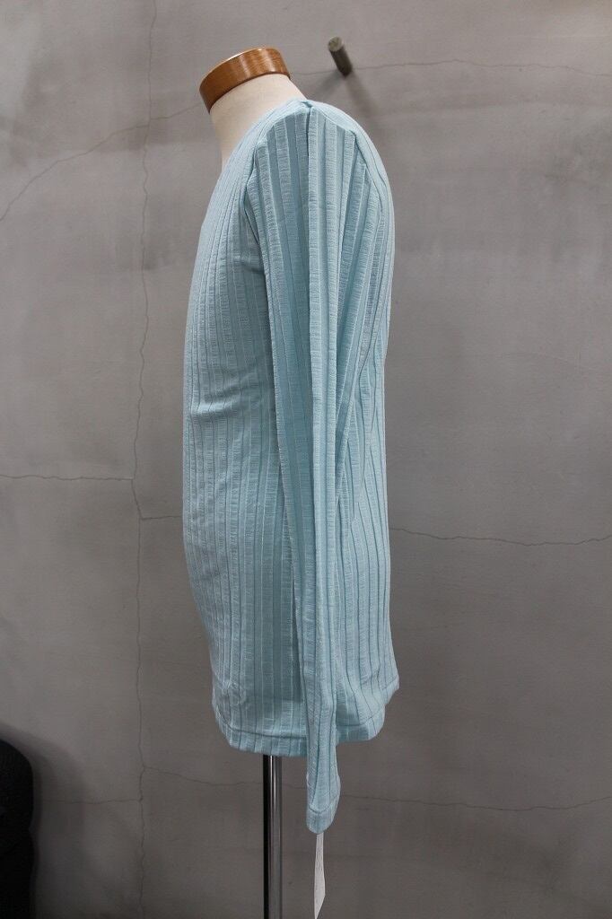bajra バジュラ テンセルワイドリブVネック ペールブルー✕ホワイト