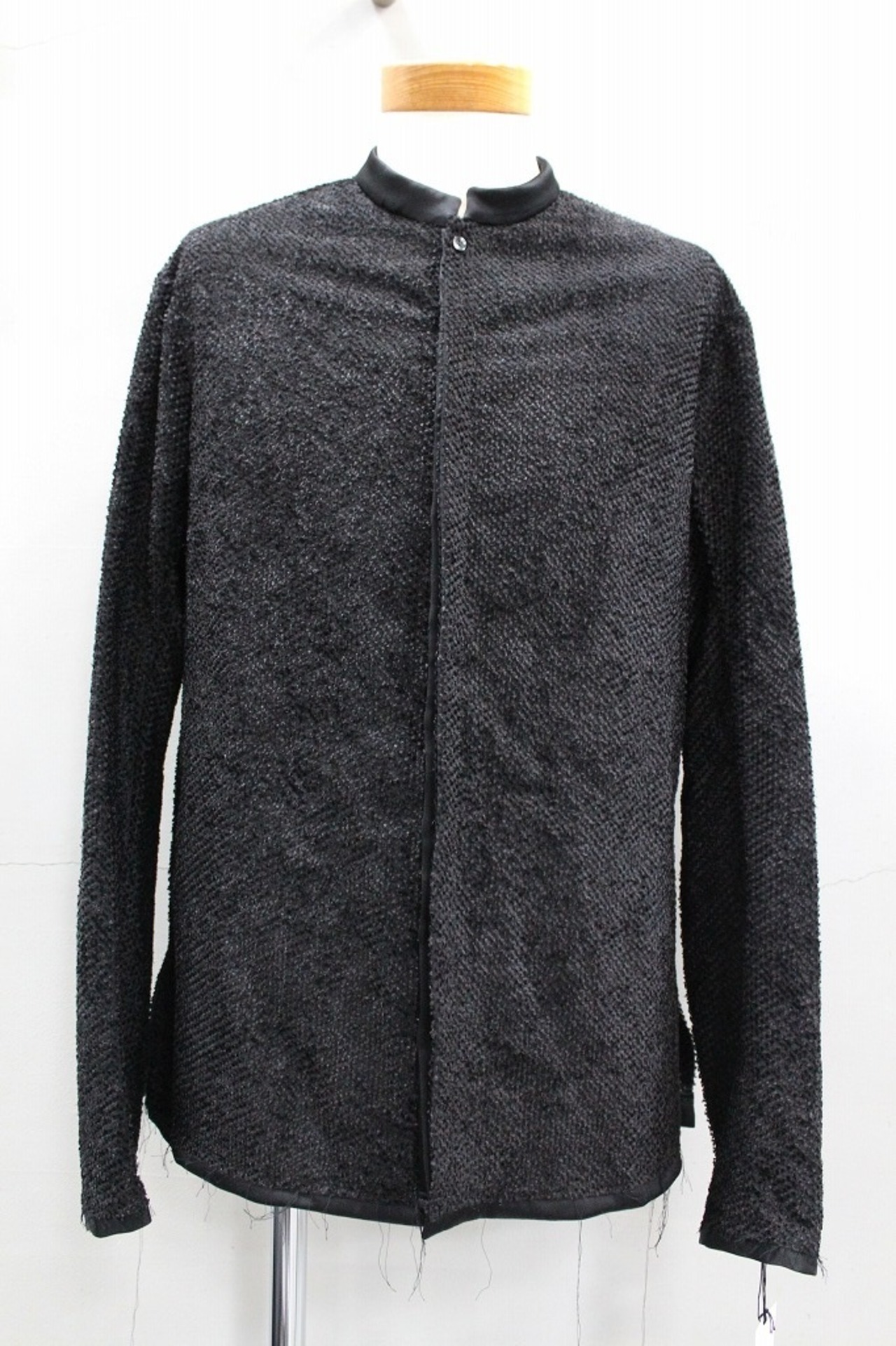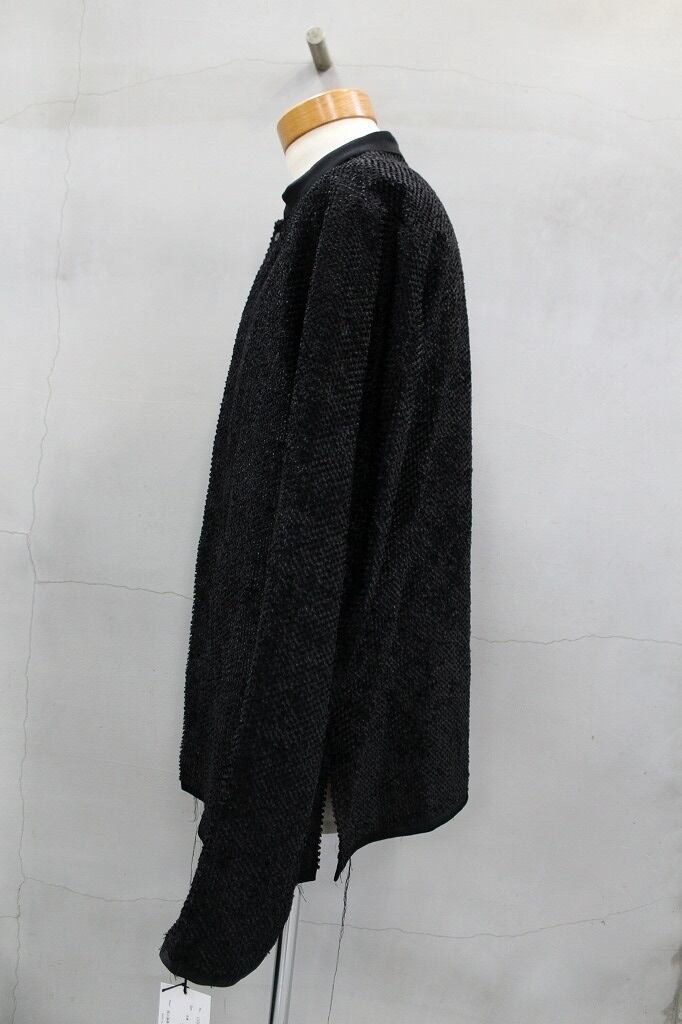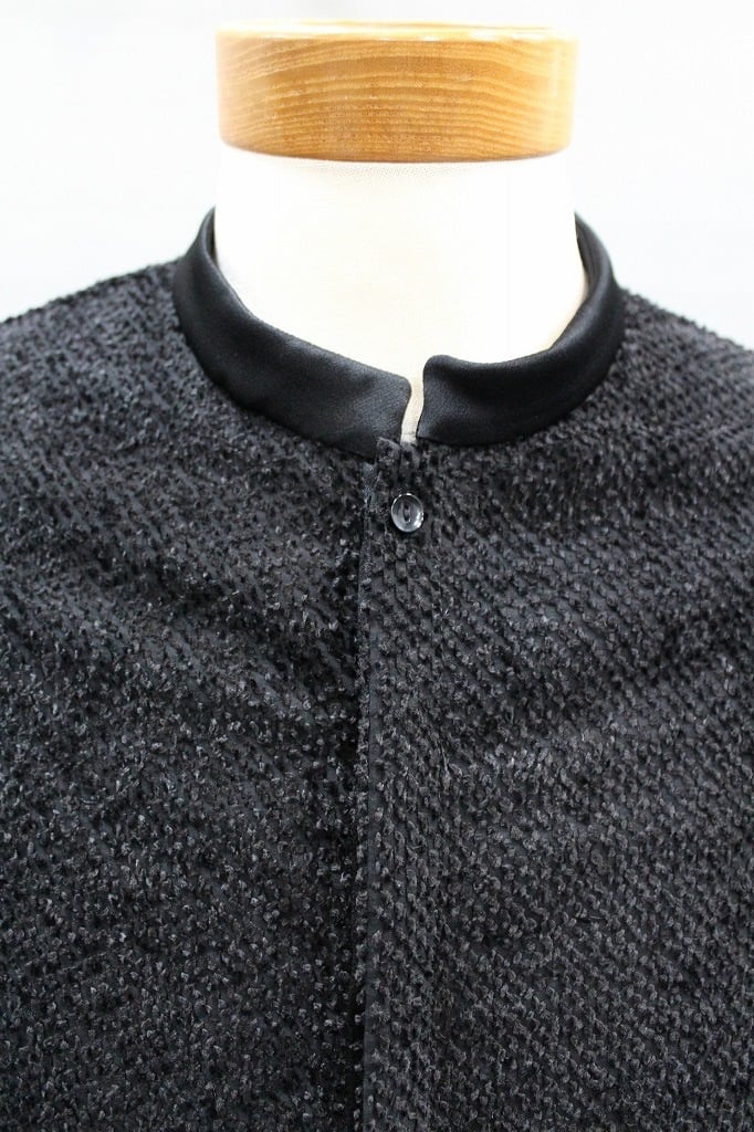 ジャガード織りで部分的に糸を浮かせ、その部分を手間をかけカットする「ツッキリ」という手法で作られた暖かみがありながらエッジの効いた表情の素材を使用したシリーズの中のマオカラーシャツになります。フロントの掛け合わせは比翼仕立てにし、ミニマオカラーの襟部と背中センターのラインはサテン生地を用いて引き締まった印象を演出。サイズ違いでのサイズ幅を大きくし、サイズにより違った印象の仕上がりです