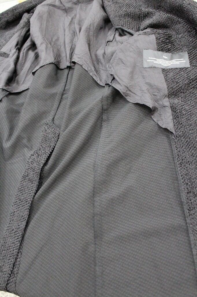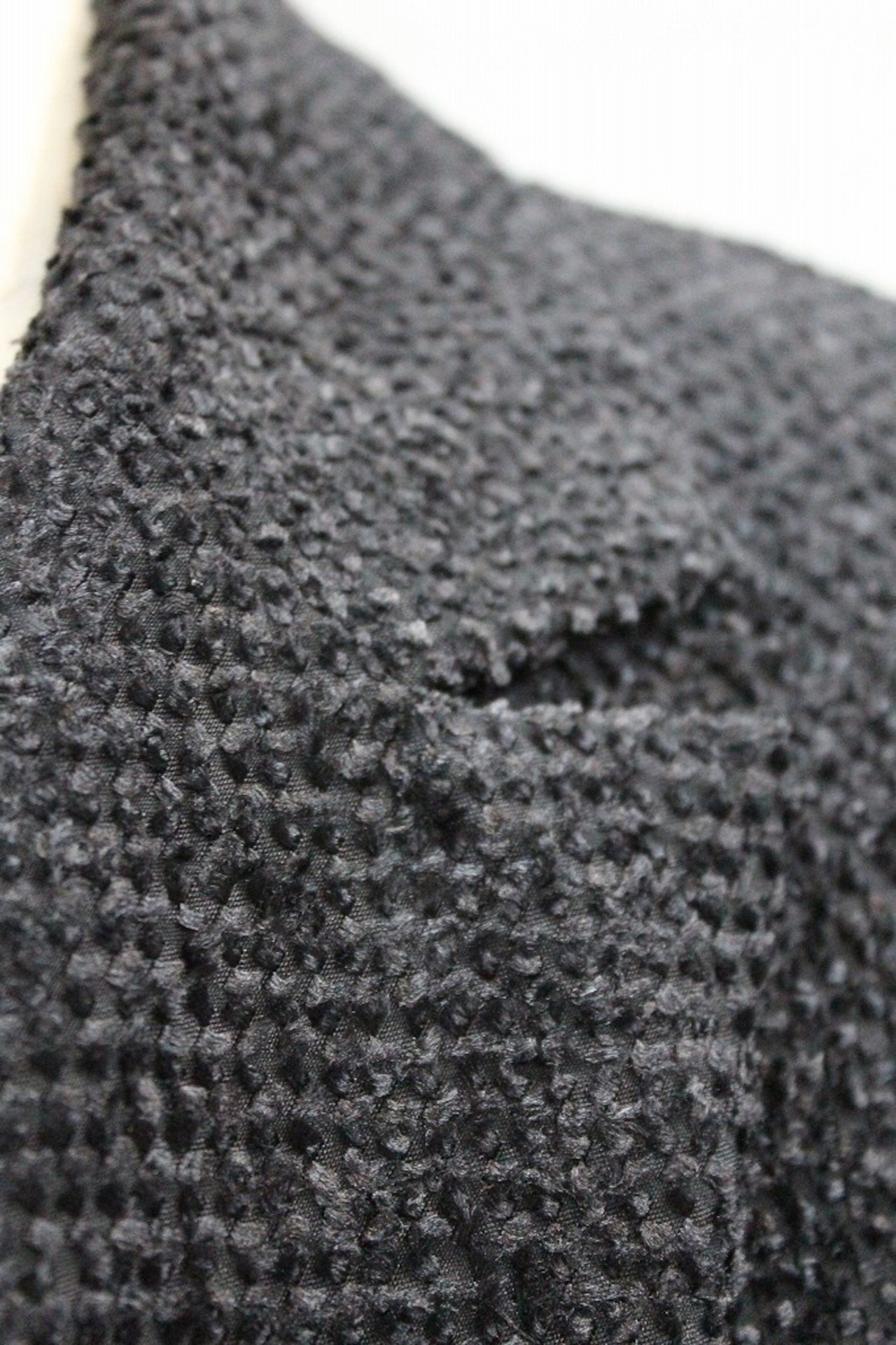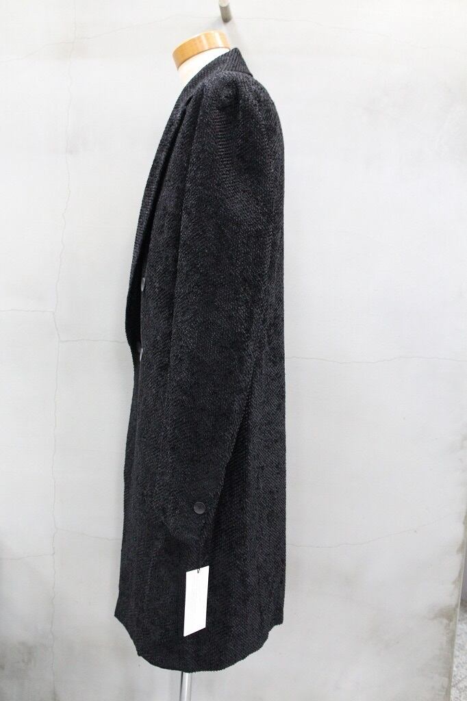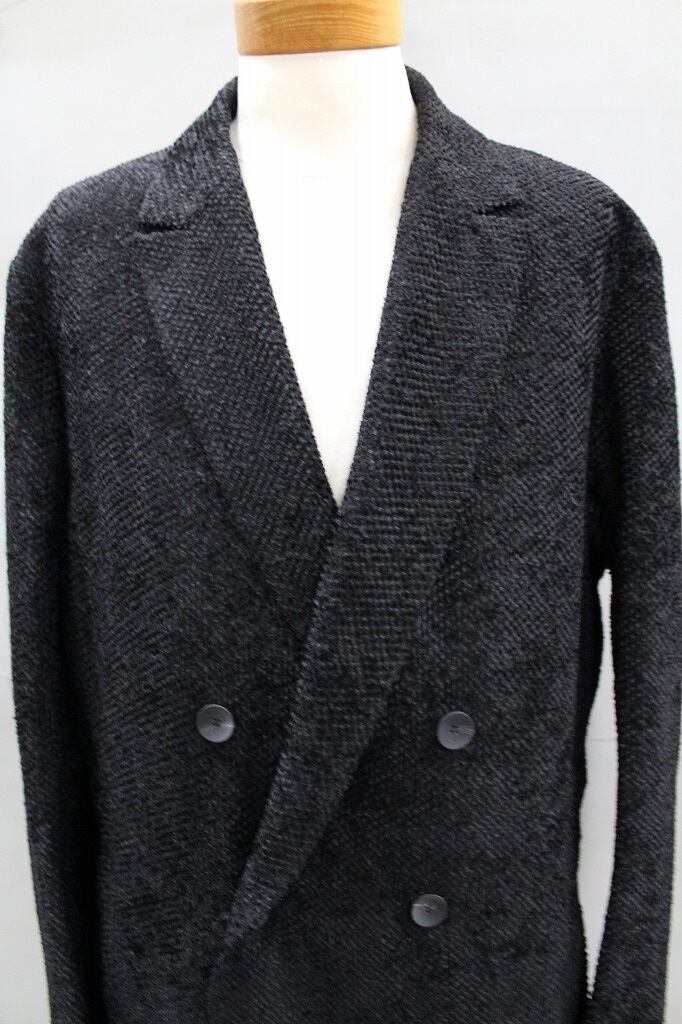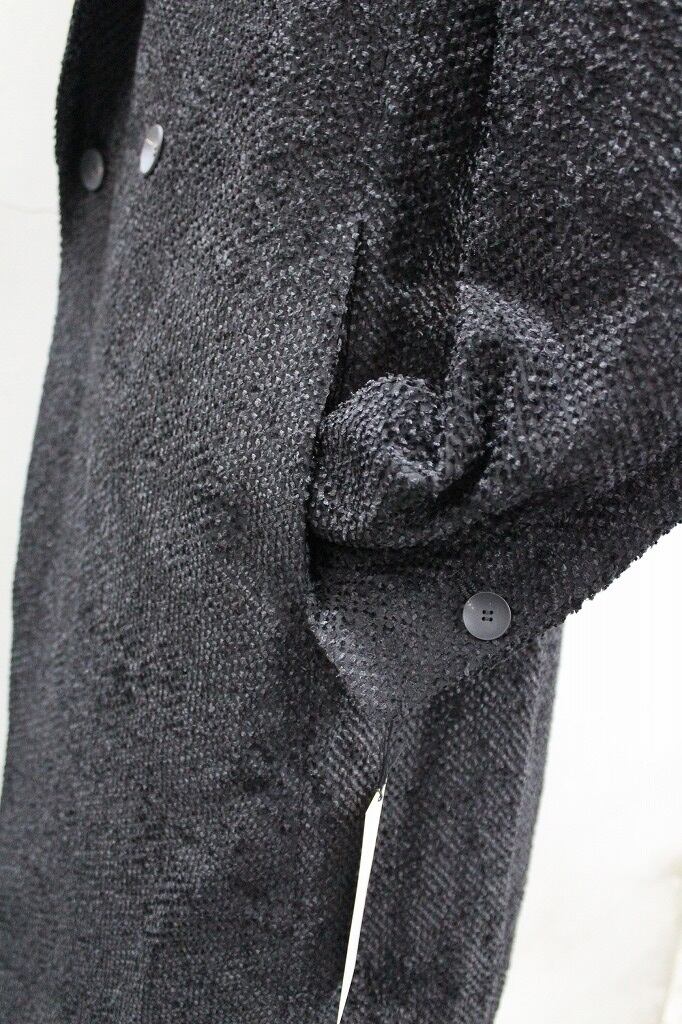 ジャガード織りで部分的に糸を浮かせ、その部分を手間をかけカットする「ツッキリ」という手法で作られた暖かみがありながらエッジの効いた表情の素材を使用したシリーズの中の、前掛け合わせがW仕様になったロングジャケット。コートともどちらの表現も正解なタイプ。